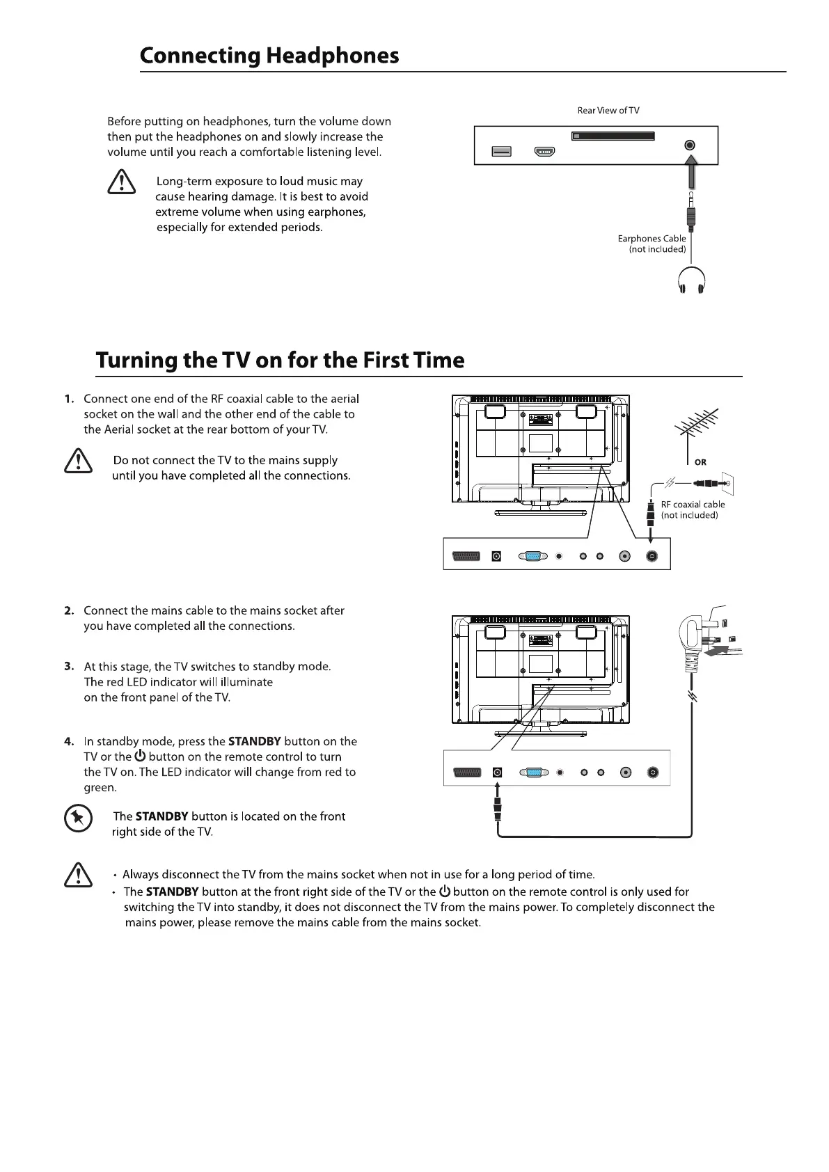 Connect your headphones to the TV’s Headphone out socket.