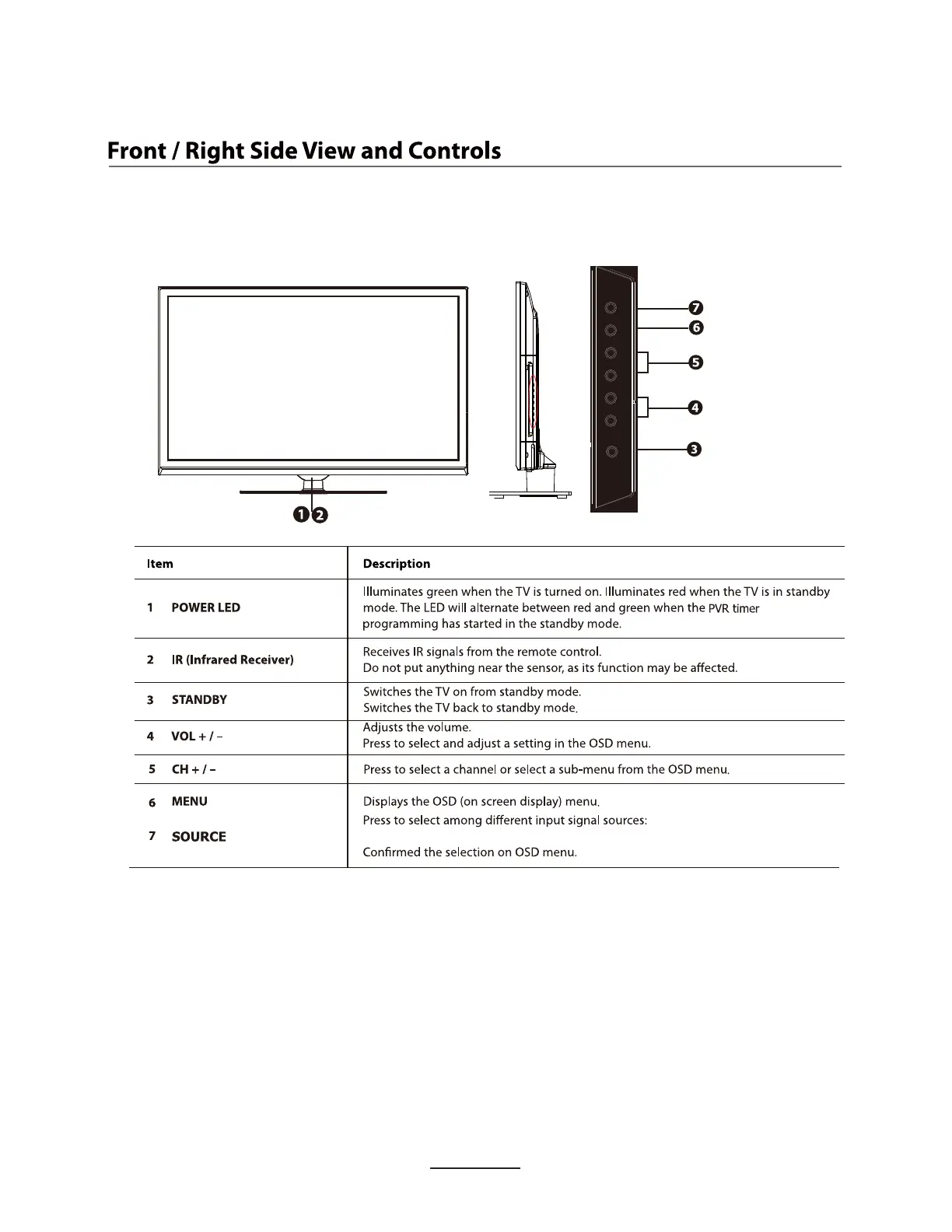 SOURCE MENU CH+ CH- VOL+ VOL - STANDBY