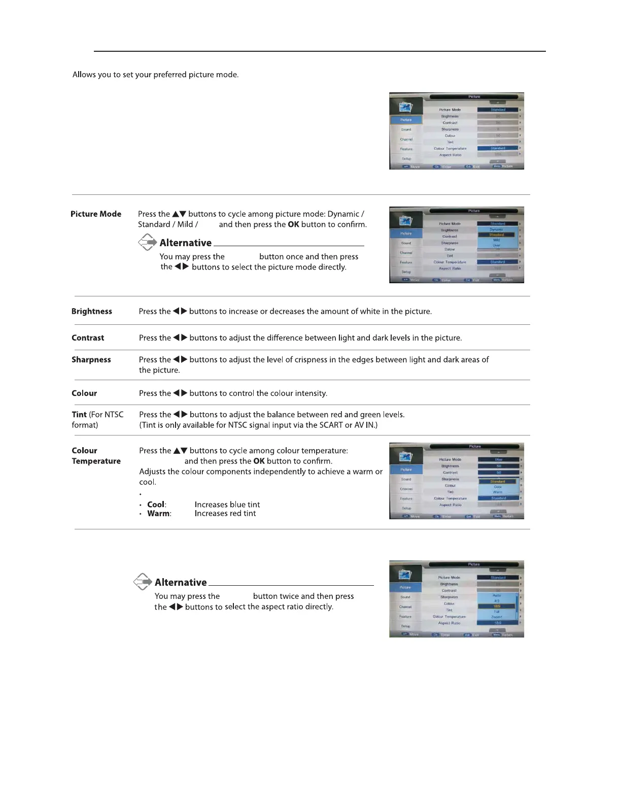 Press the ▲▼ buttons to cycle among aspect ratio: 4:3 / 16:9