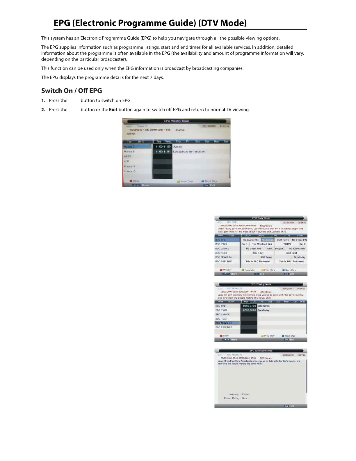 BLUE (Next Day) Update the program information of the current 7 channels in the channel
