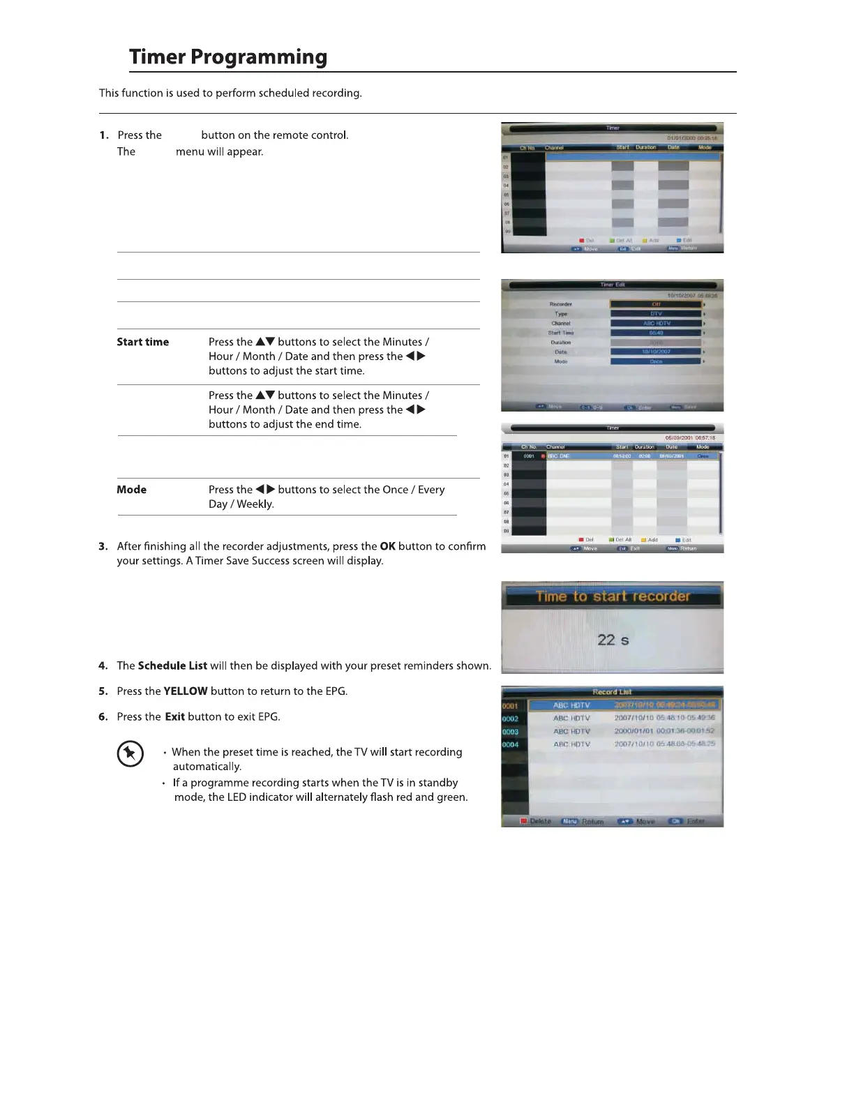 2. Press the ADD button enter the Time Edit menu for the channel.