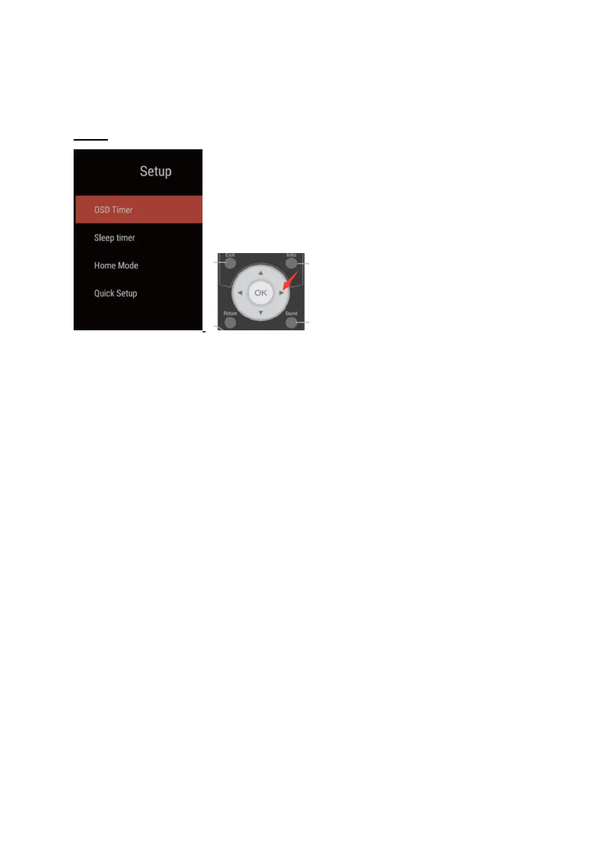 To navigate all menus, use the up/down/left right navigation keys on the remote control. Press