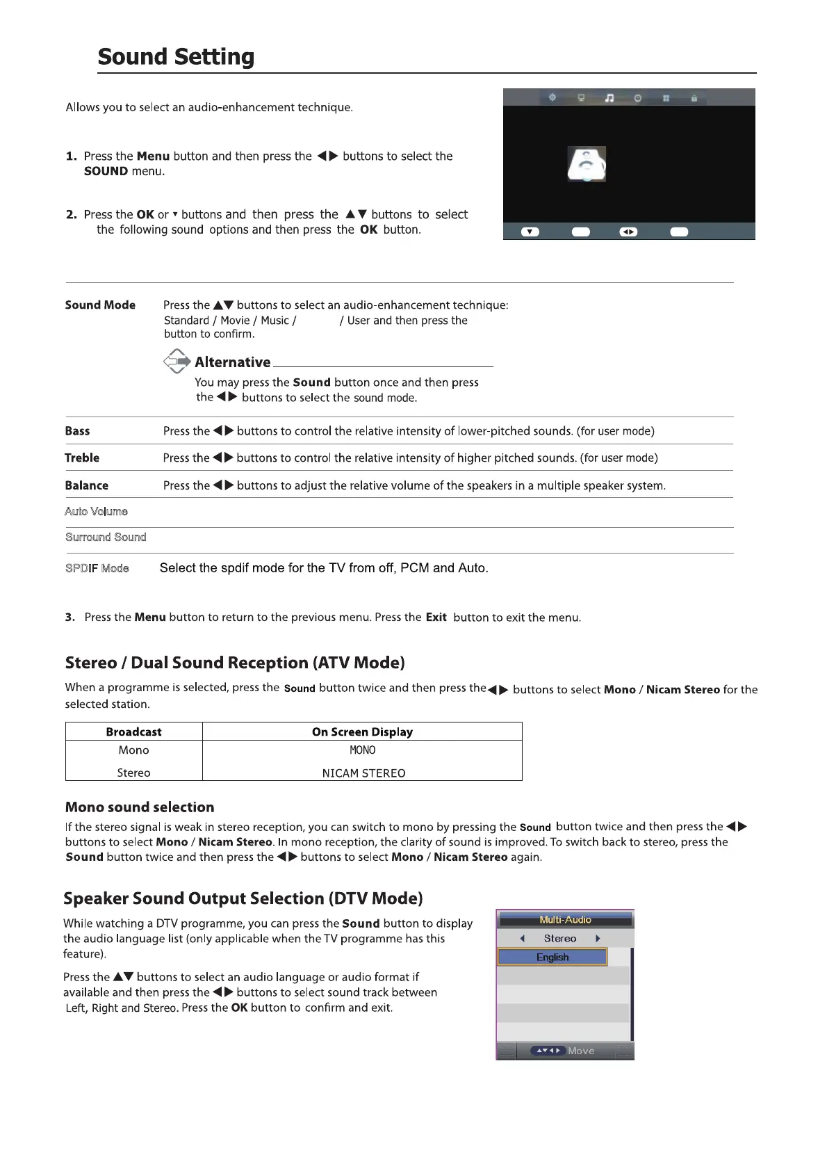 Auto Volume This feature automatically adjusts the audio level when the TV is turned on.This function is activated by selecting”ON”.