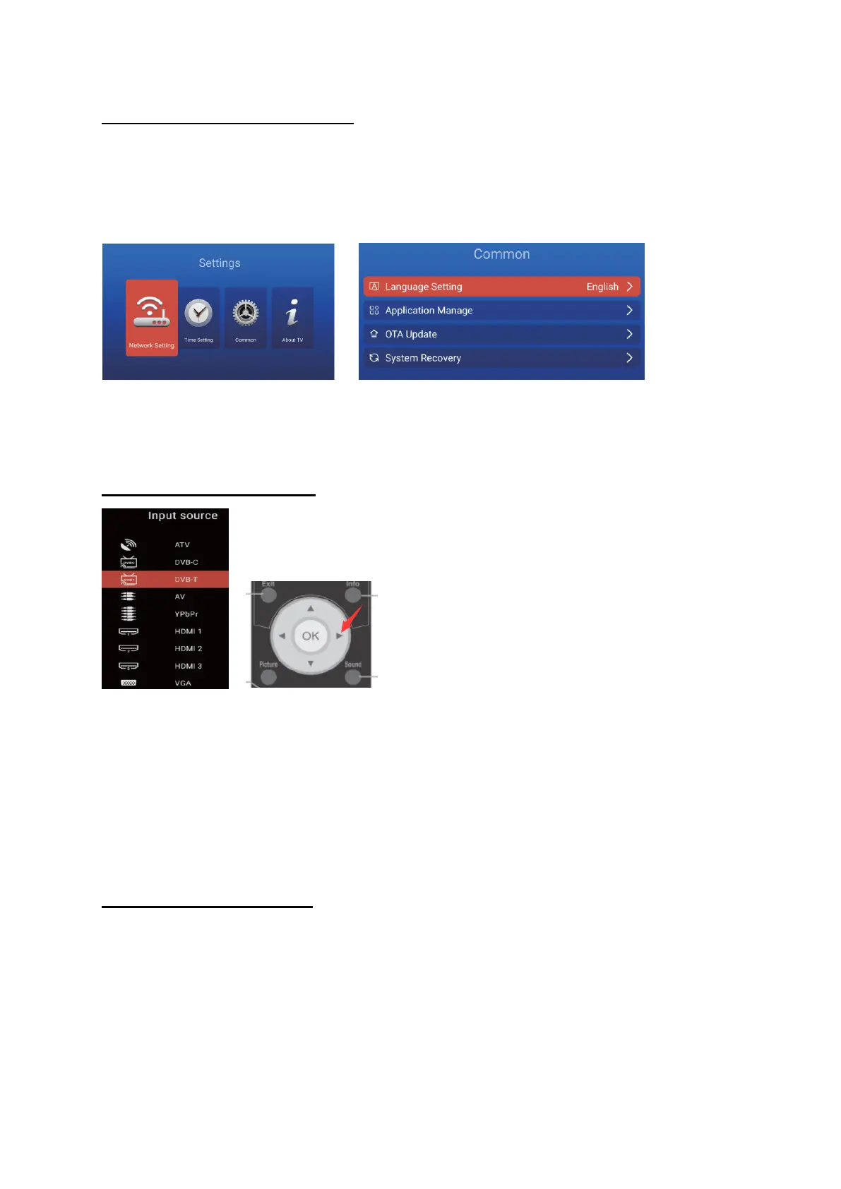 1. Press the Source button on the TV or the Source key on the remote control to display the input