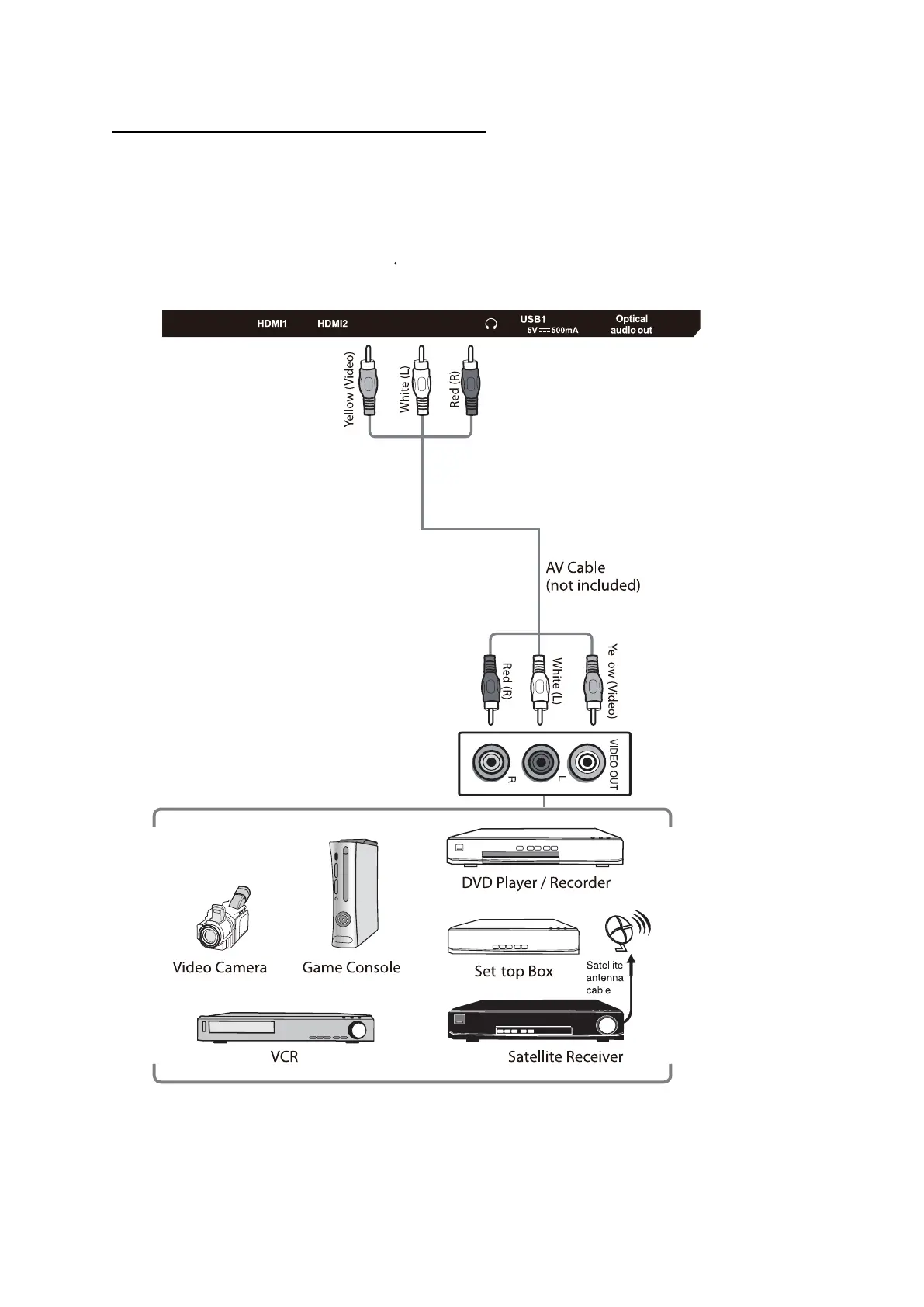Connect the Television to an AV device with the RED = Audio Right / YELLOW = Video /