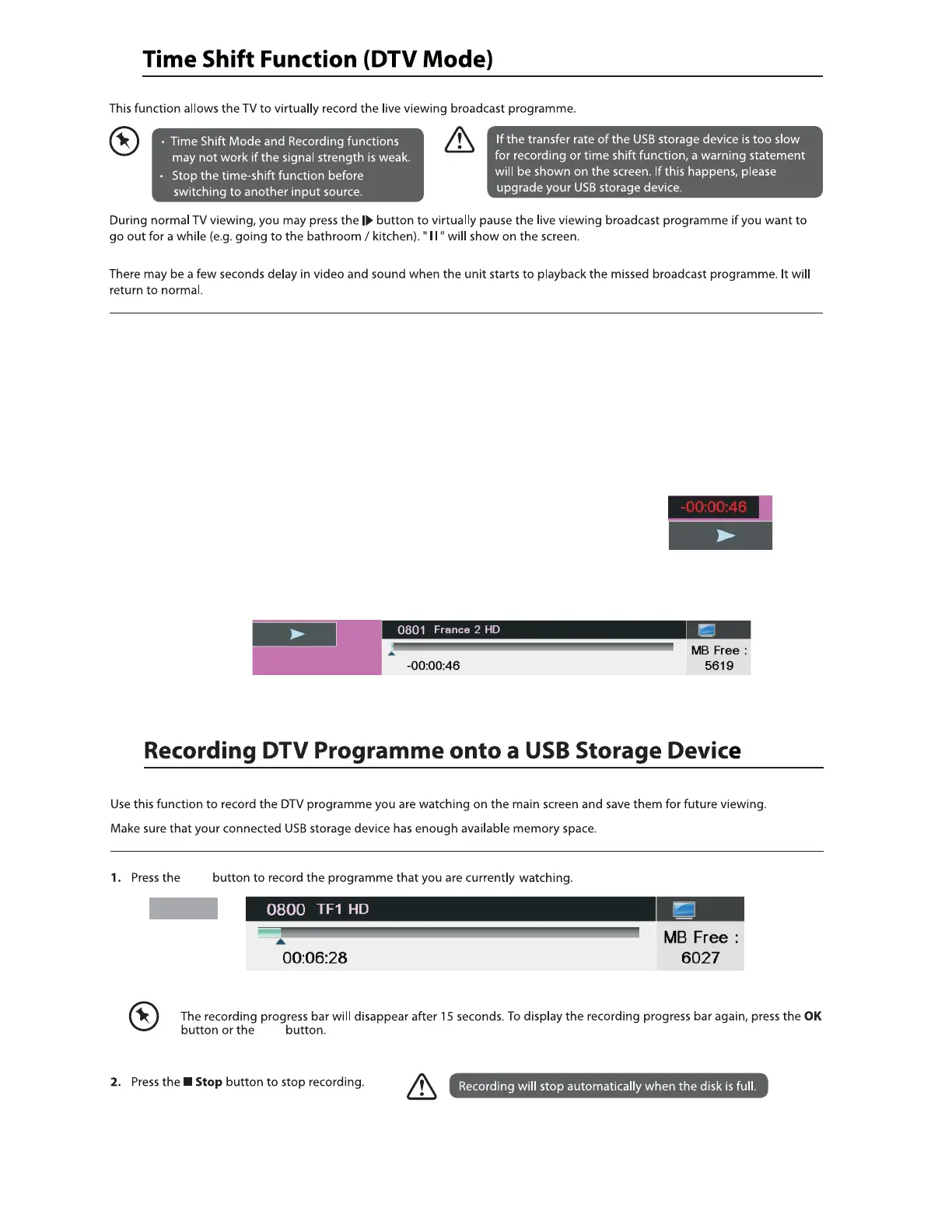 b Progress bar is for current recording length compared with the disk free space when REC start.