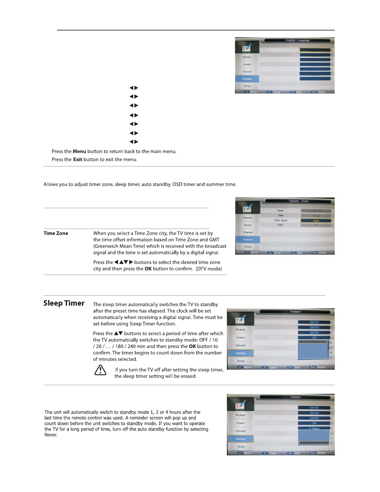 1. Press the ▲▼ buttons to Clock then press the OK button to confirm.