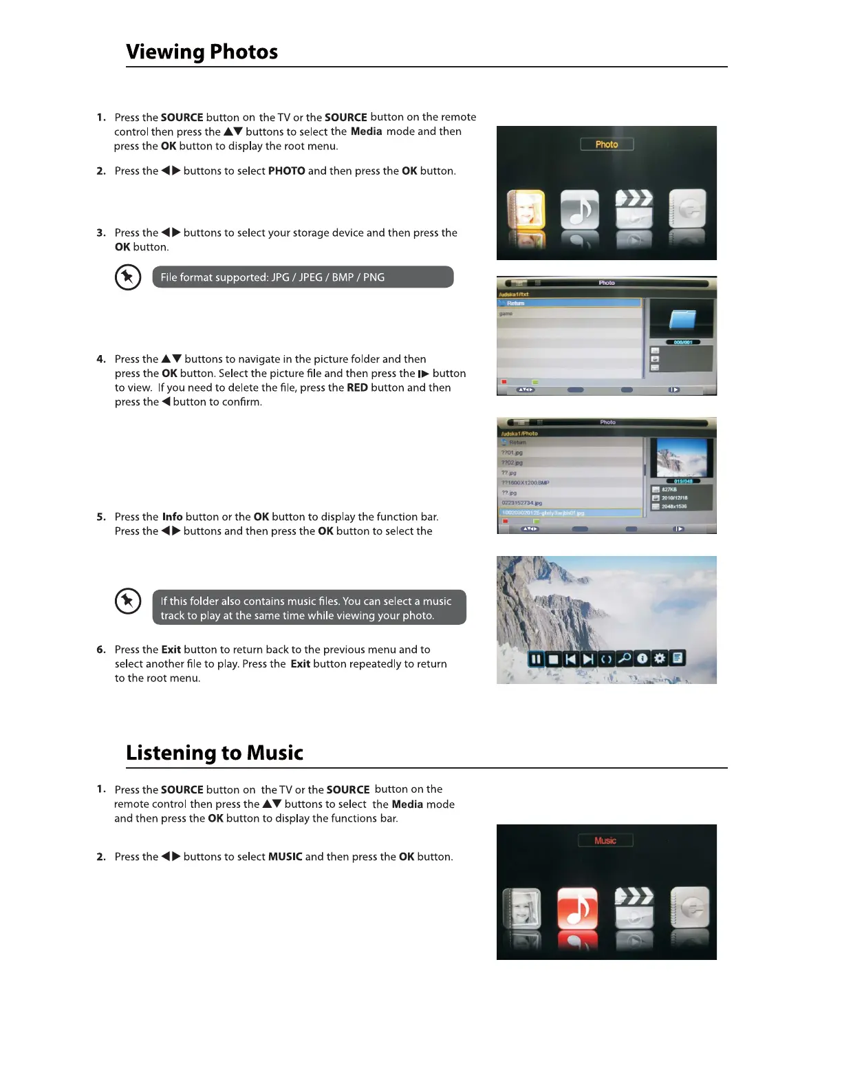 Info / Photo Setup / Play list.