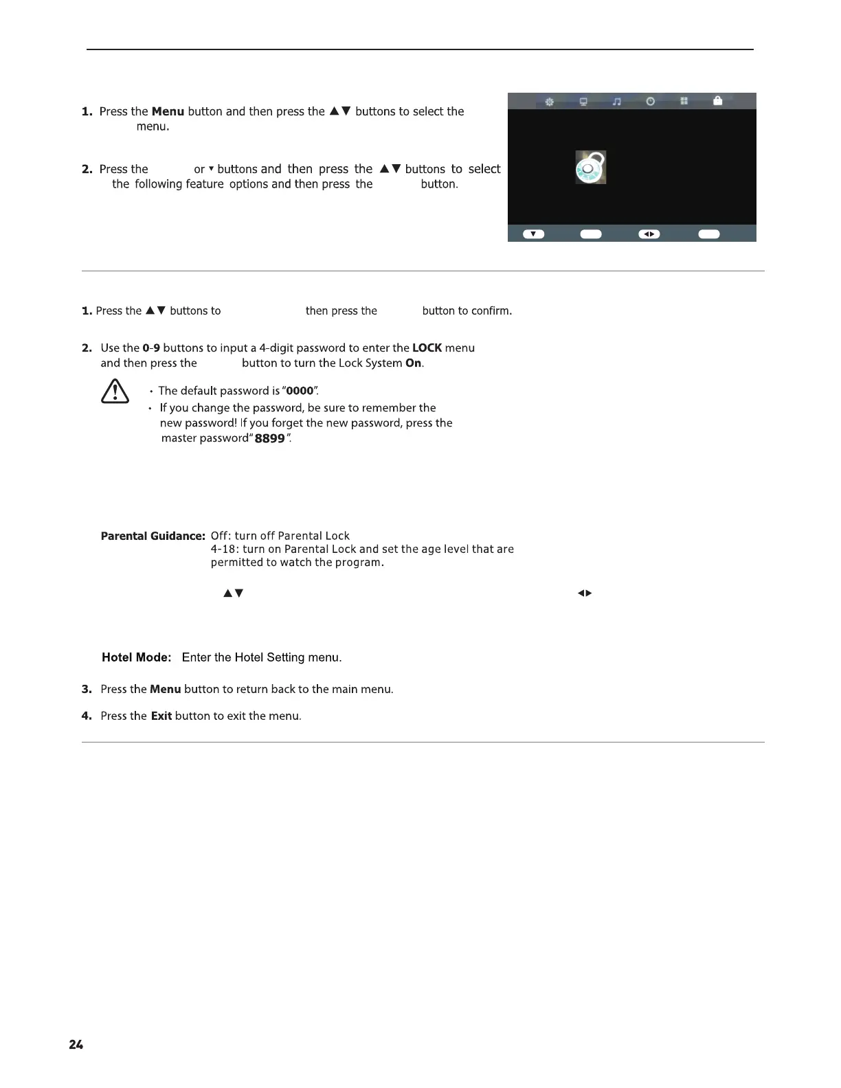 Menu/CH+/CH-/VOL+/VOL- of the device will be locked.