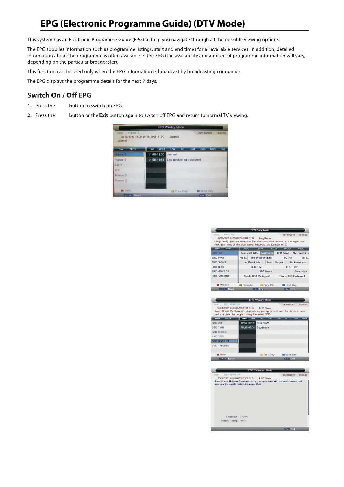 BLUE (Next Day) Update the program information of the current 7 channels in the channel