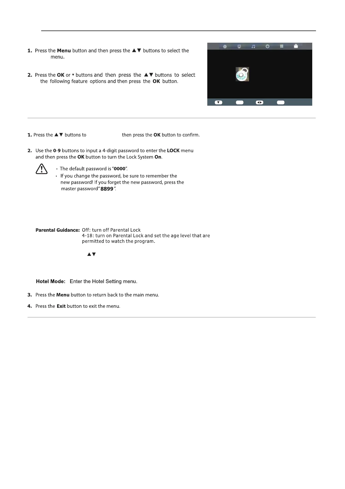 Menu/CH+/CH-/VOL+/VOL- of the device will be locked.
