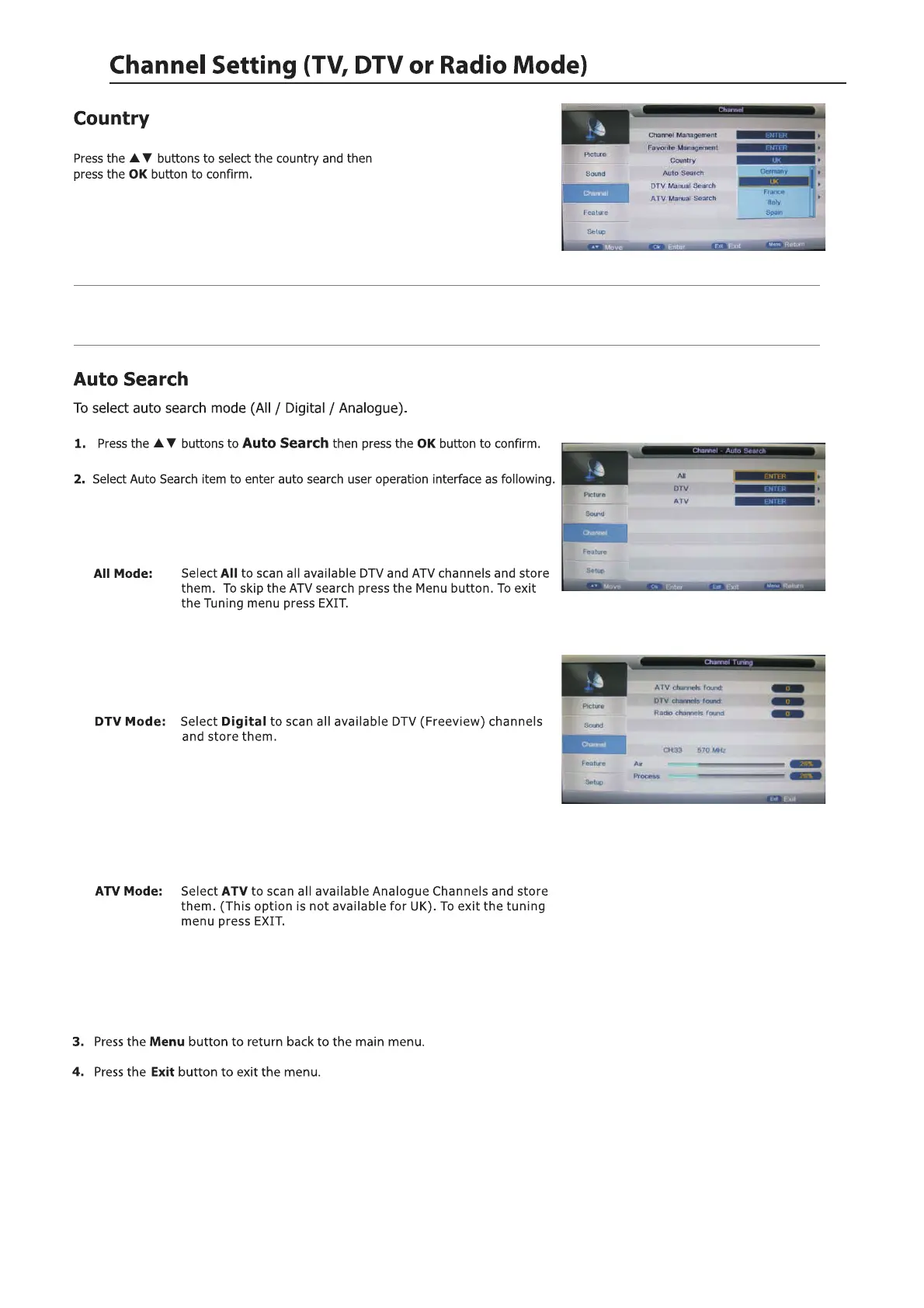 Select DTV type, you can choose Freeview, Cable as you like.