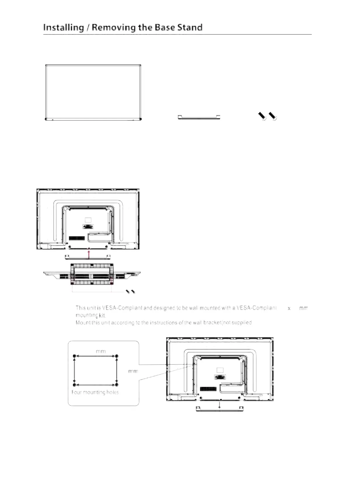 Place the TV face down on a soft and flat surface (blanket, foam, cloth, etc.) to prevent any damage to the TV.
