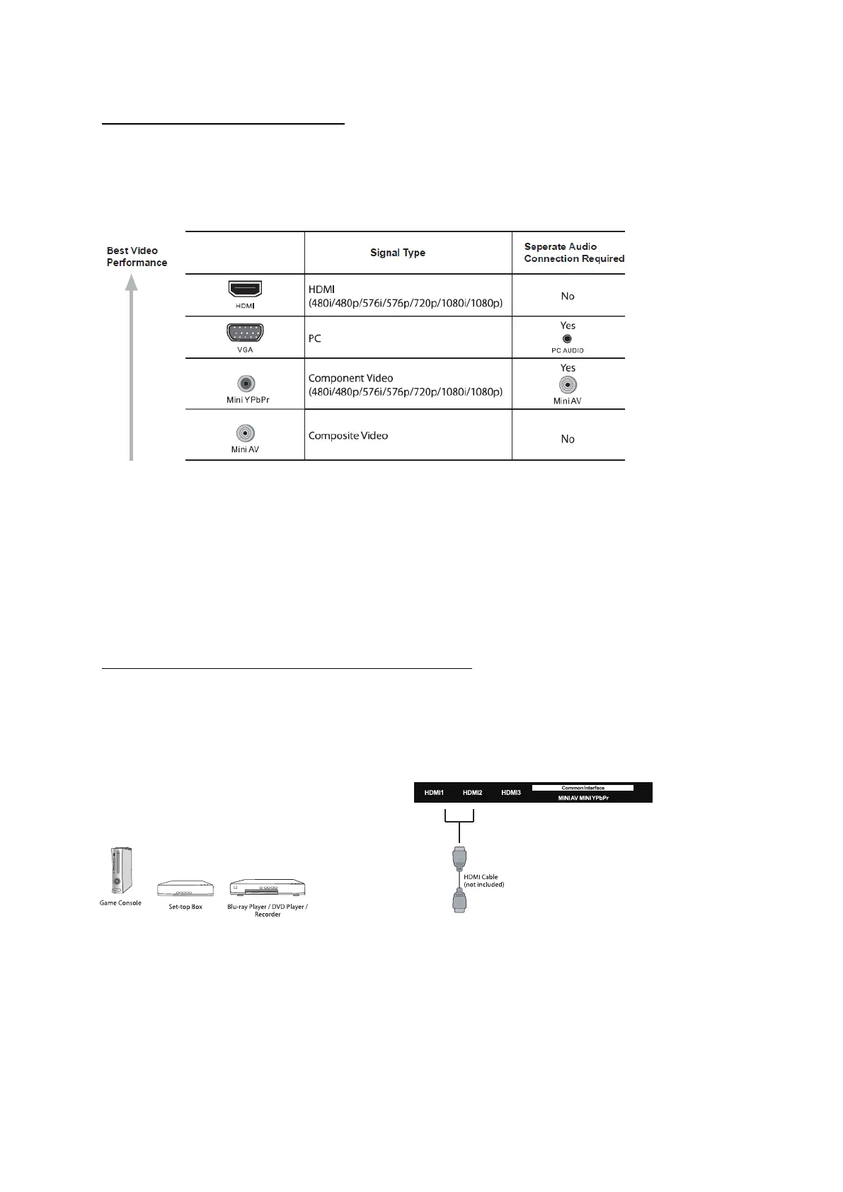Always connect a device to the TV with the highest quality connection available. Also, use good