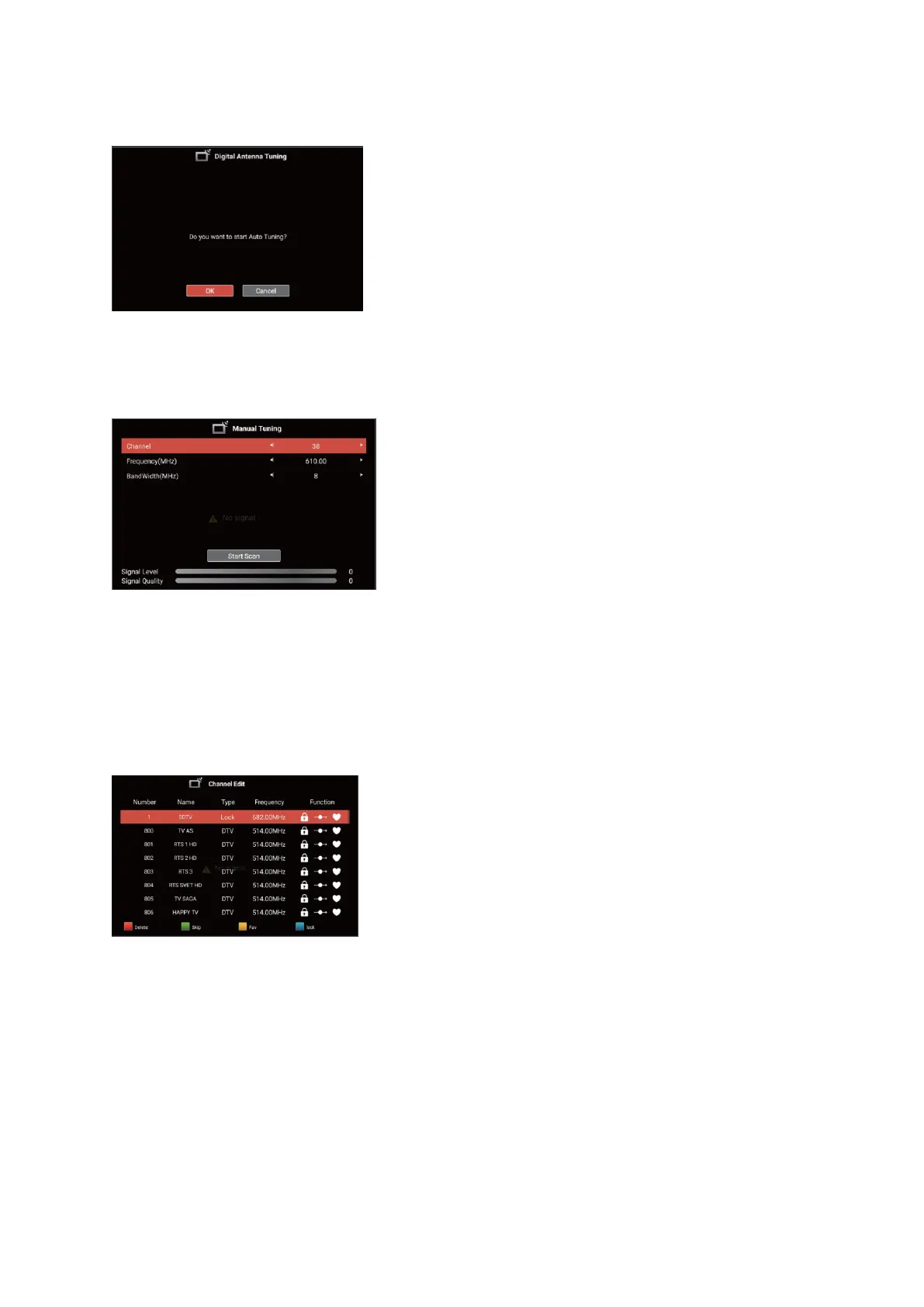 Press the OK Key on the remote control to start the TV channel tuning. Select Cancel to exit the Auto