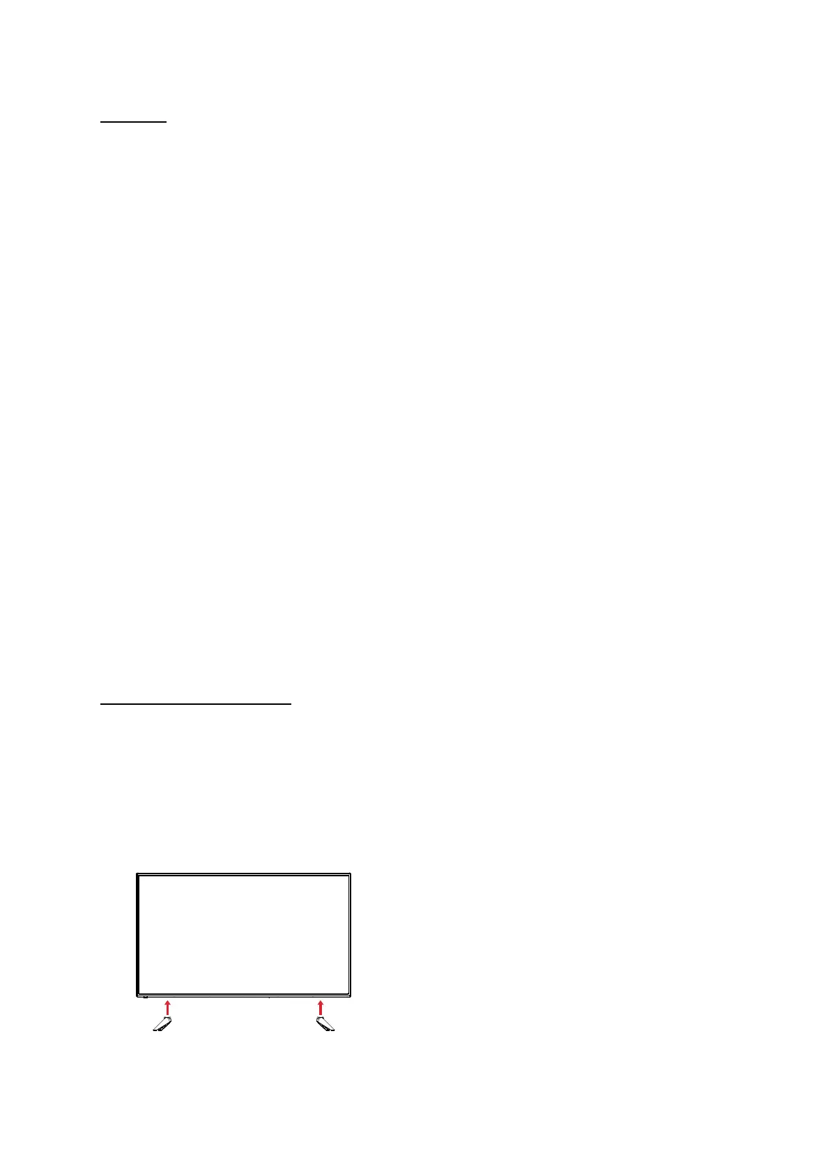 1. Attach the stand feet in the positions shown below and secure them with supplied screws
