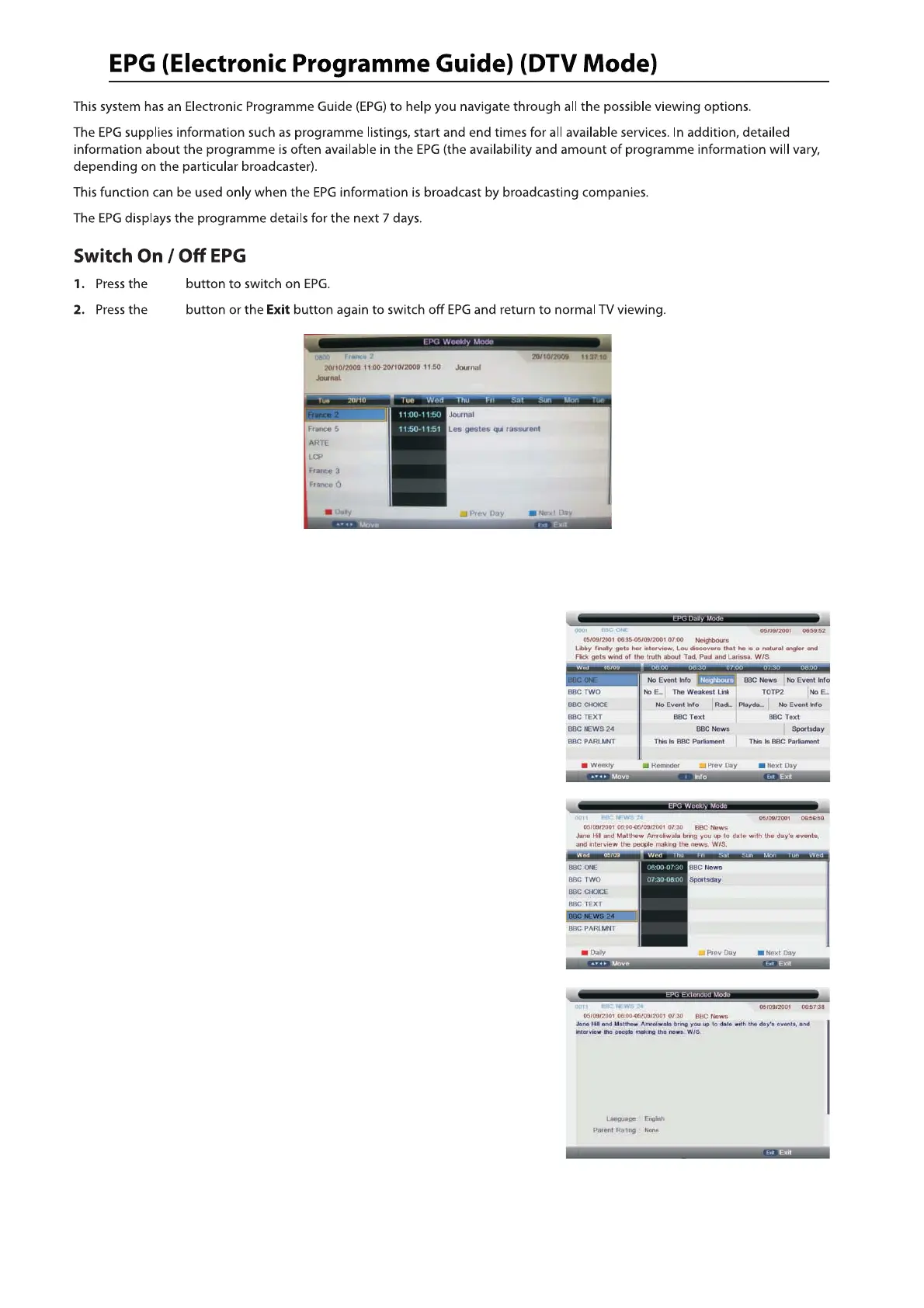BLUE (Next Day) Update the program information of the current 7 channels in the channel