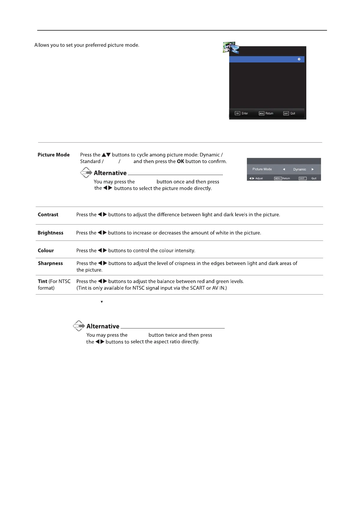 buttons to cycle among aspect ratio: 4:3 / 16:9Auto /