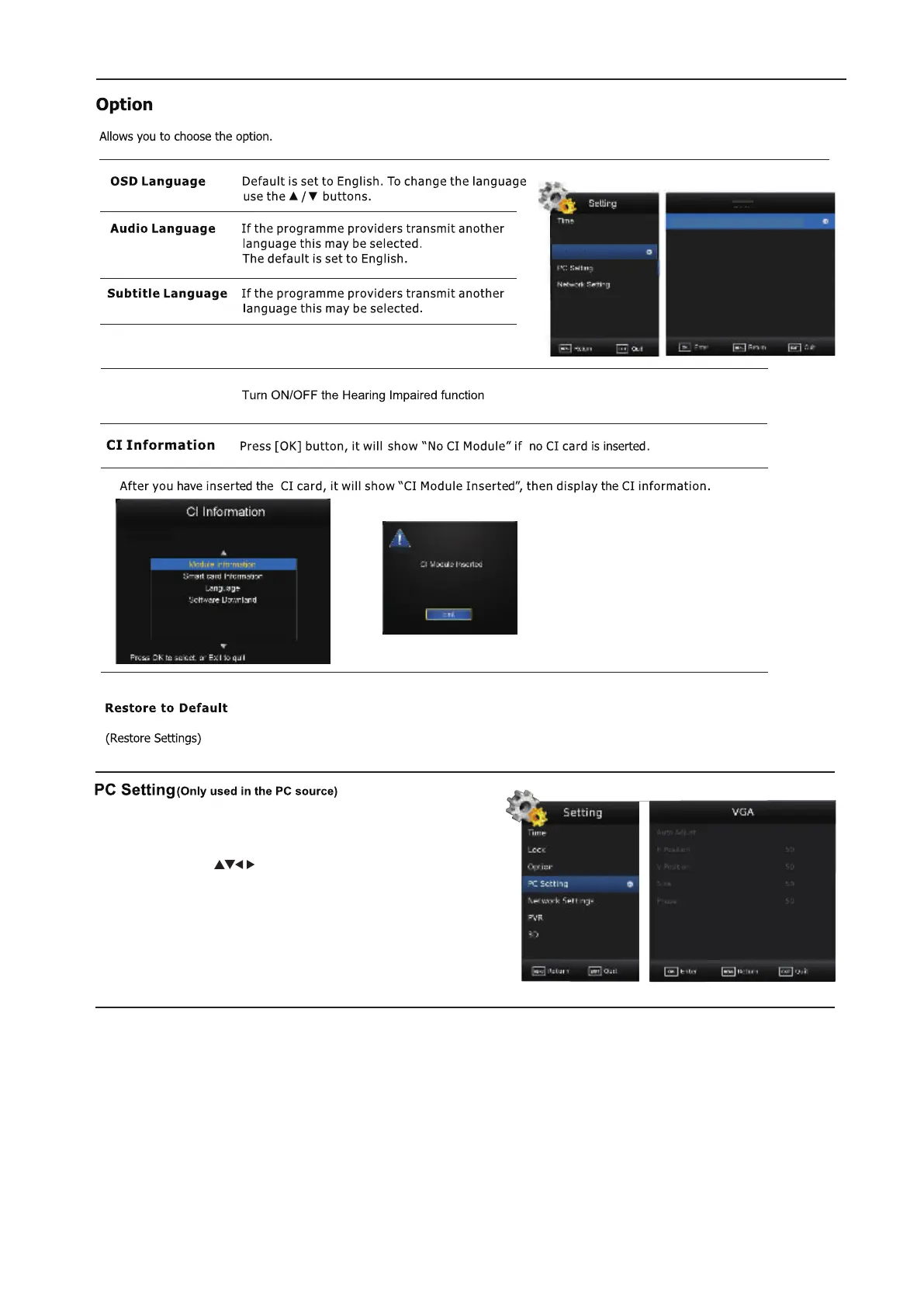 Press Menu and use button to PC Setting. You can adjust