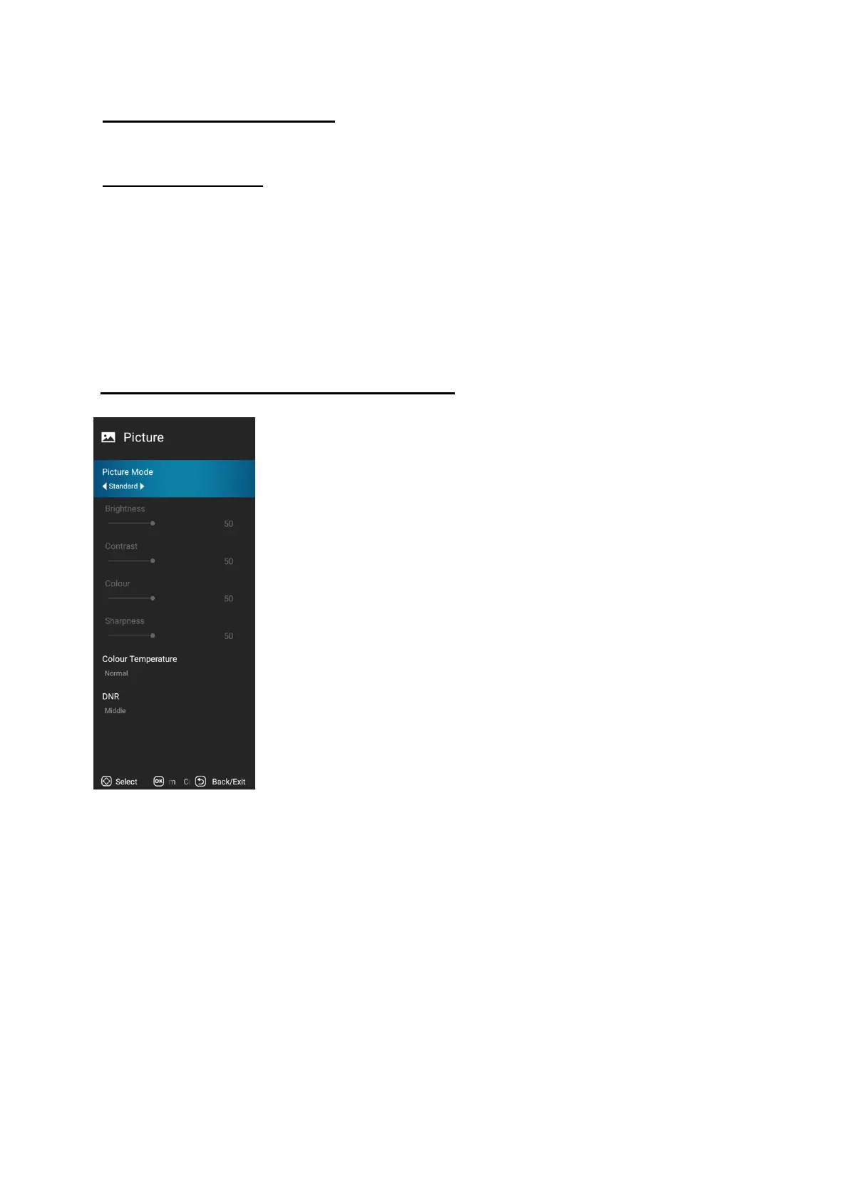 3. Picture mode: Select from Standard/Dynamic/Mild/User