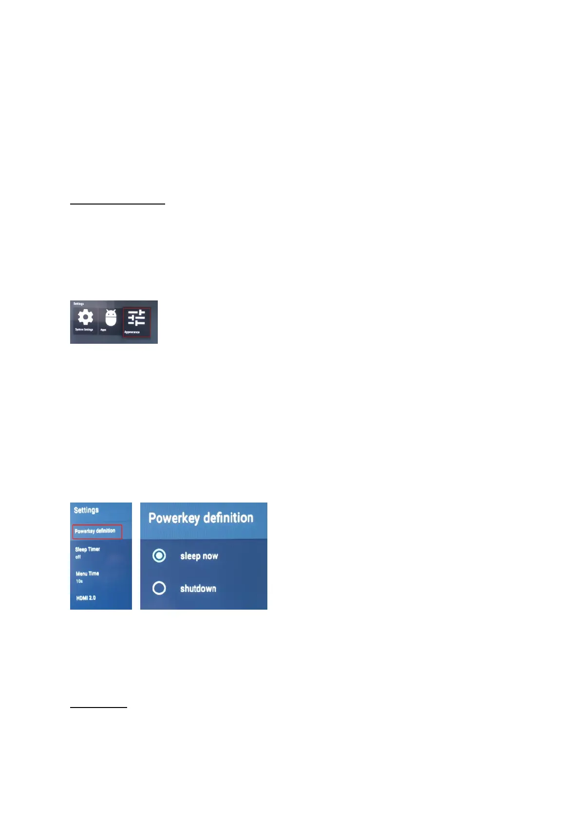 2. Shut down: Will shut the Android system down and a restart of the TV will re-boot the android