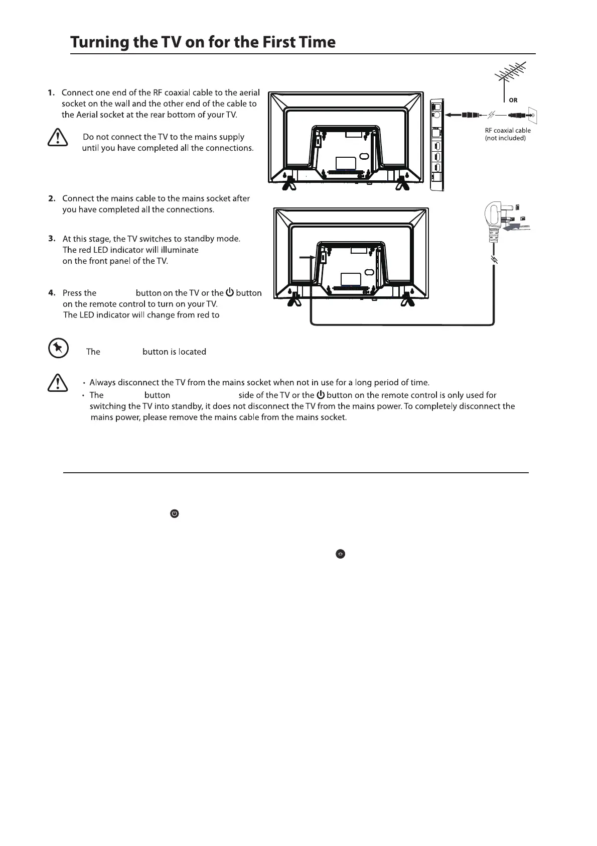 1. Make sure your TV is plugged in and the aerial lead is connected to the TV aerial socket.
