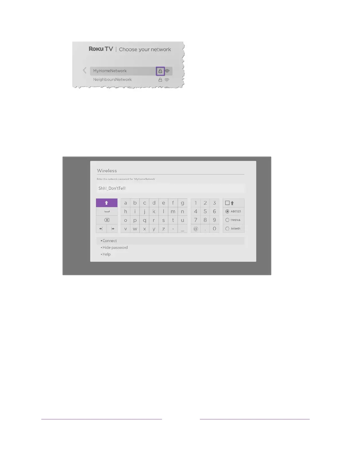 keyboard appears. Enter your wireless network password by using the purple