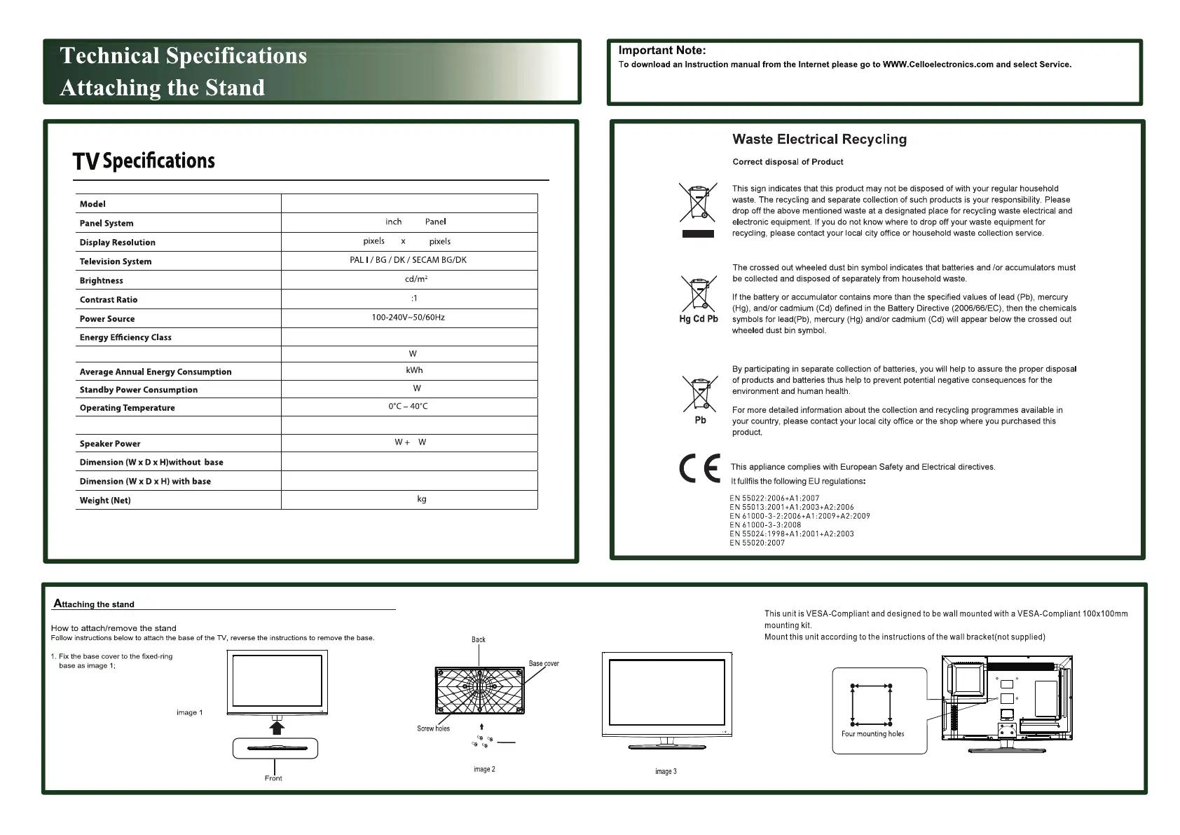 Bekijk gratis de handleiding van Cello LED2612QD, stel vragen en lees de antwoorden op veelvoorkomende problemen, of gebruik onze assistent om sneller informatie in de handleiding te vinden of uitleg te krijgen over specifieke functies.