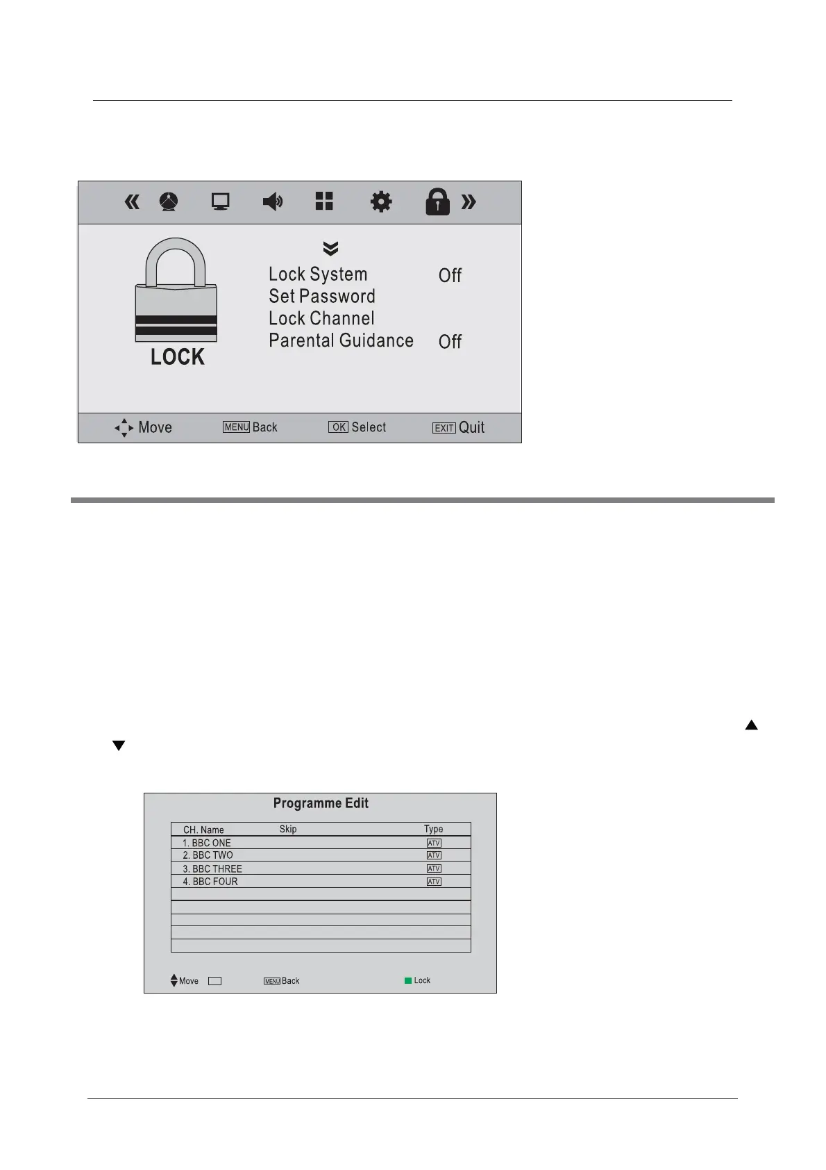 Lock Channel: You must enter the password to view channels that have been locked. Use