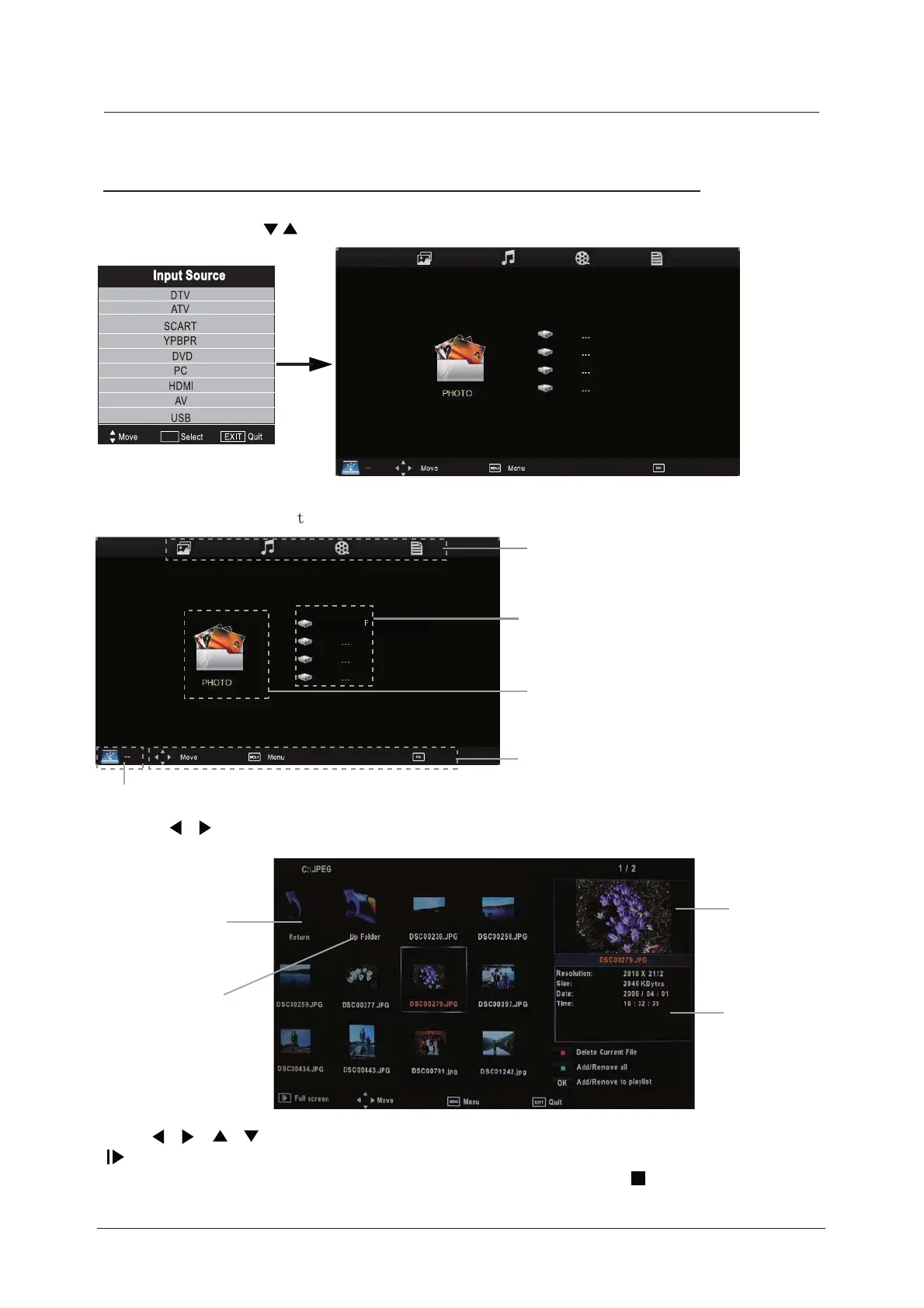 3). Press / button to select the files on the USB device (PHOTO, MUSIC, MOVIE, TEXT) to view