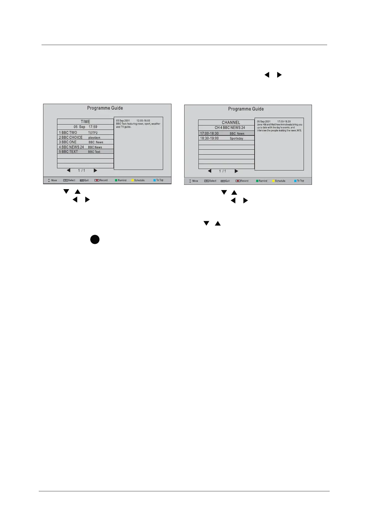 Remind: Press the GREEN button to display the remind menu, and set the time. When the