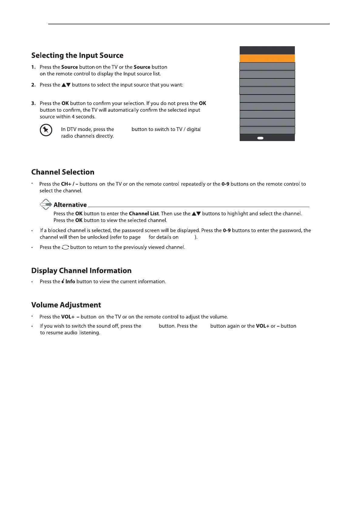 DTV, ATV, AV, SCART, YPBPR, HDMI1, HDMI2, HDMI3, PC, Media.