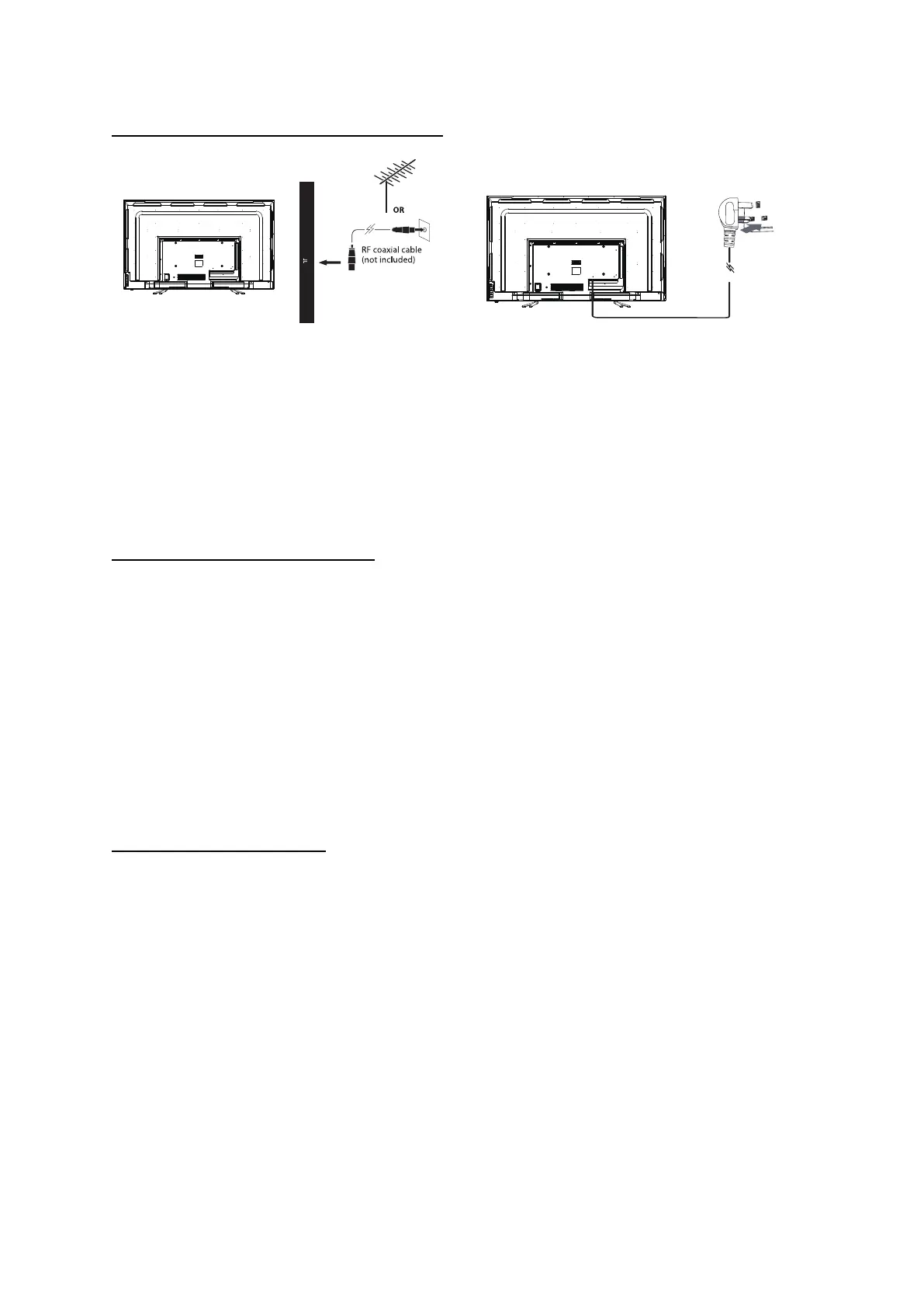 Connect the TV to house mains supply with the 3-pin plug. The TV will power on automatically and the initial