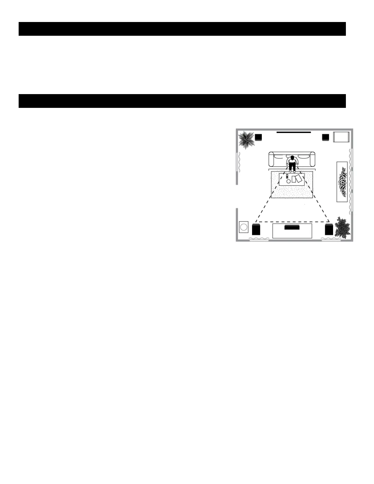 Sie Lautsprecher ca. 1 bis 1/2 Fuß (45 cm) von den Seitenwänden und 1 Fuß (30 cm) von der Rückwand und ca. 6 Fuß