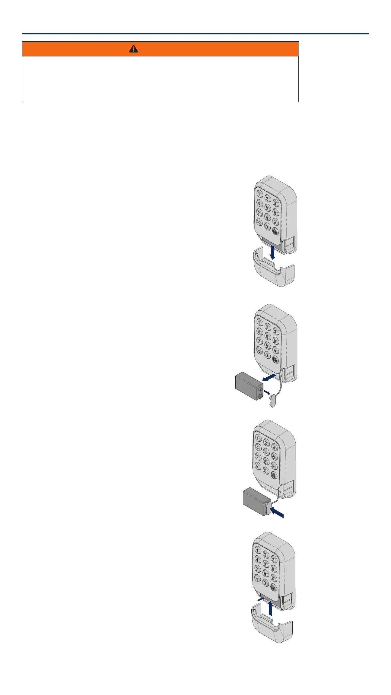 needs to be replaced. Replace the battery with a new 9V battery. Dispose of the old battery