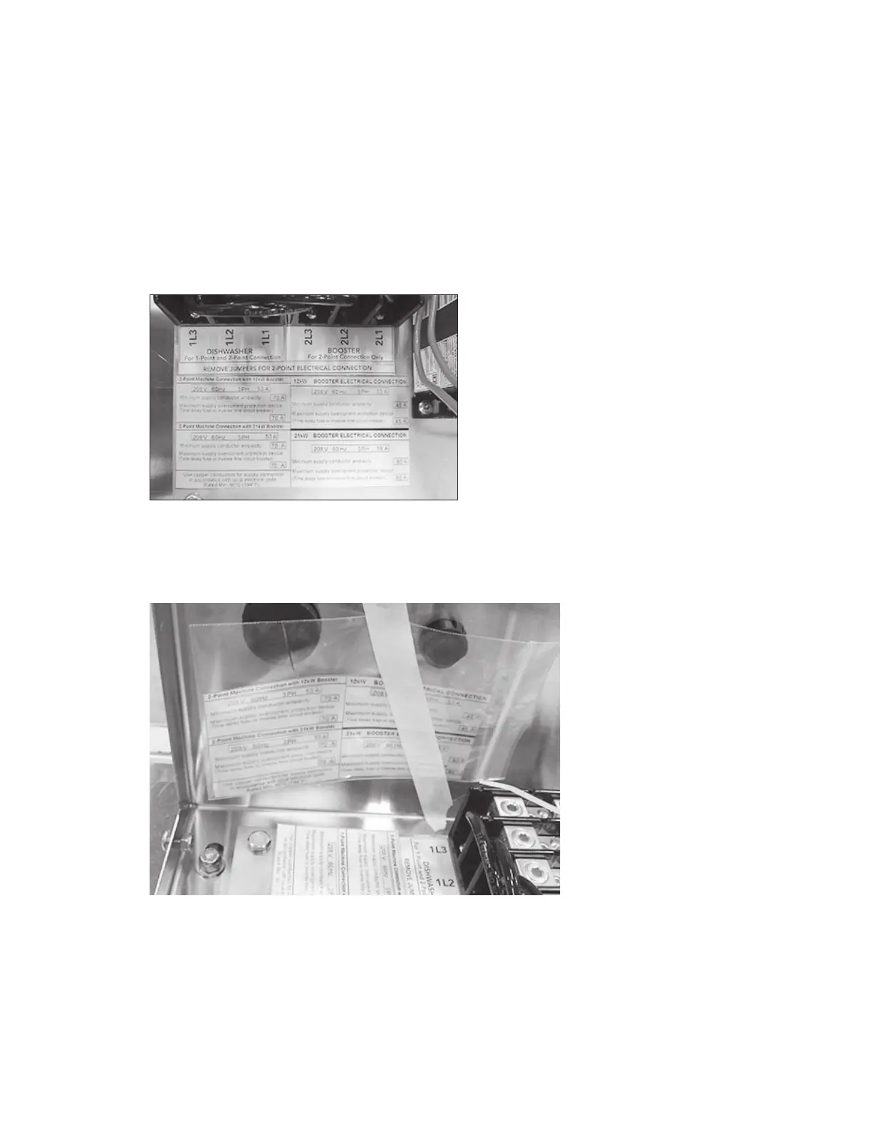 1. Open the control cabinet and remove the jumpers, (Fig. 12), between 'Dishwasher'