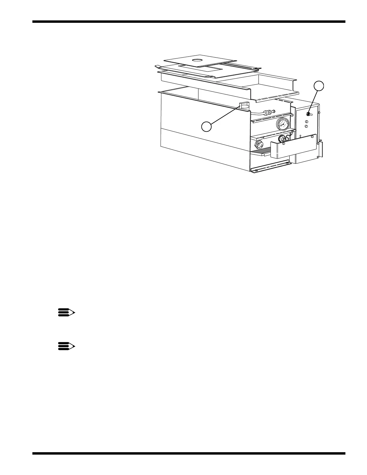 Ensure that the standpipe (A) is in place. Put switch (B) up to the “ON-FILL” position. The