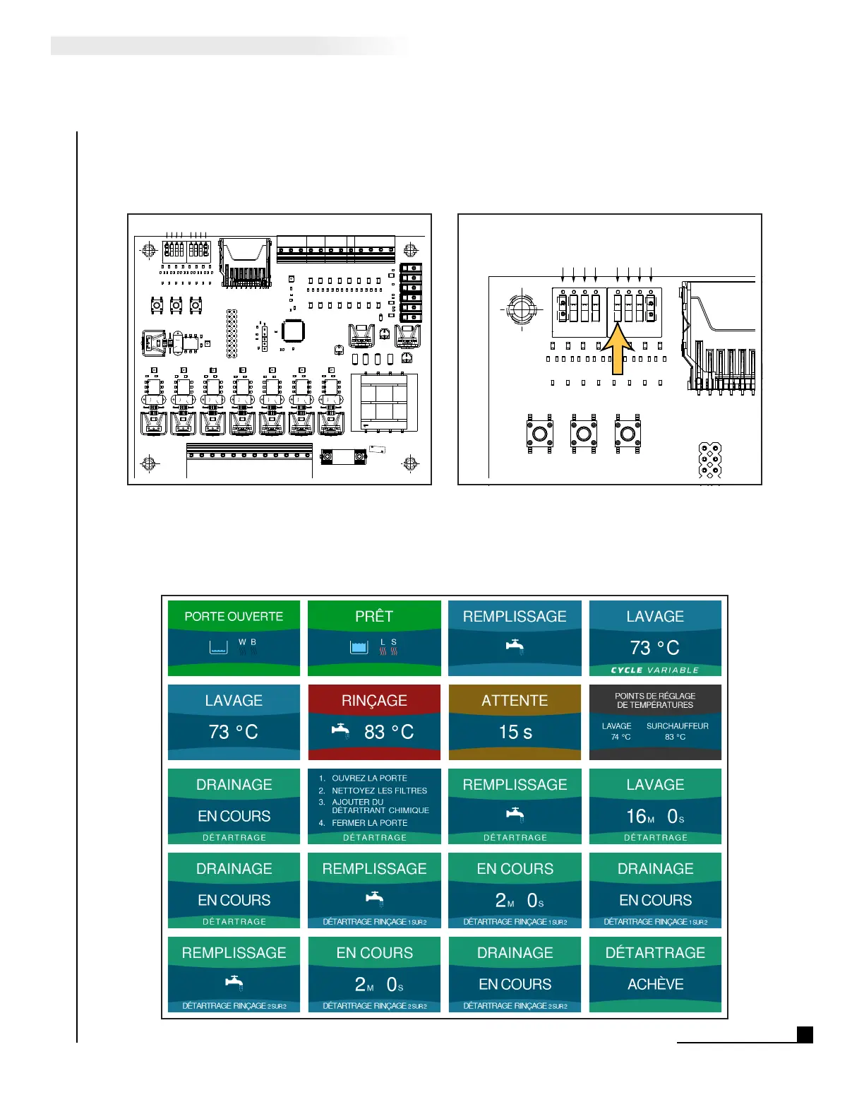 3. The LCD screen will display dishwasher status in French if Dip Switch 5 is in the