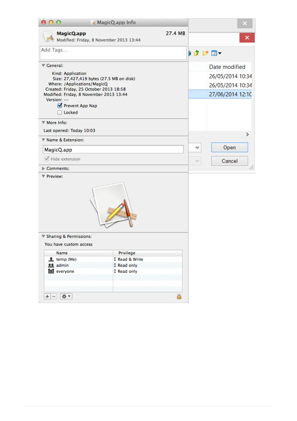 to check the permissions of the "MagicQ" folder. There are detailed steps in the