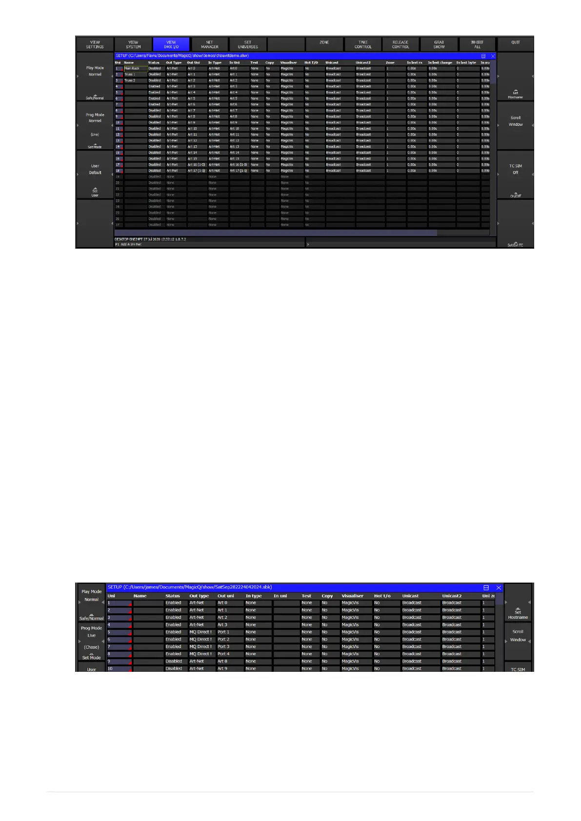 enables modification of the inputs and outputs for all the universes. MagicQ consoles support
