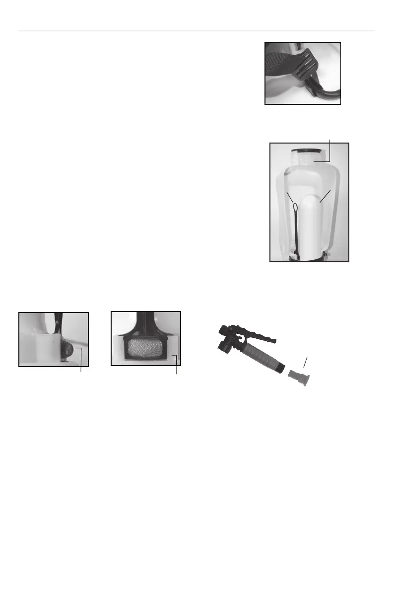 This backpack sprayer is equipped with a 3 stage filtering system (see