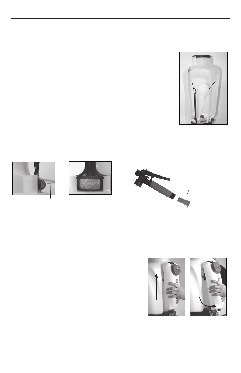residuos al tanque. Llene el tanque del pulverizador con agua.