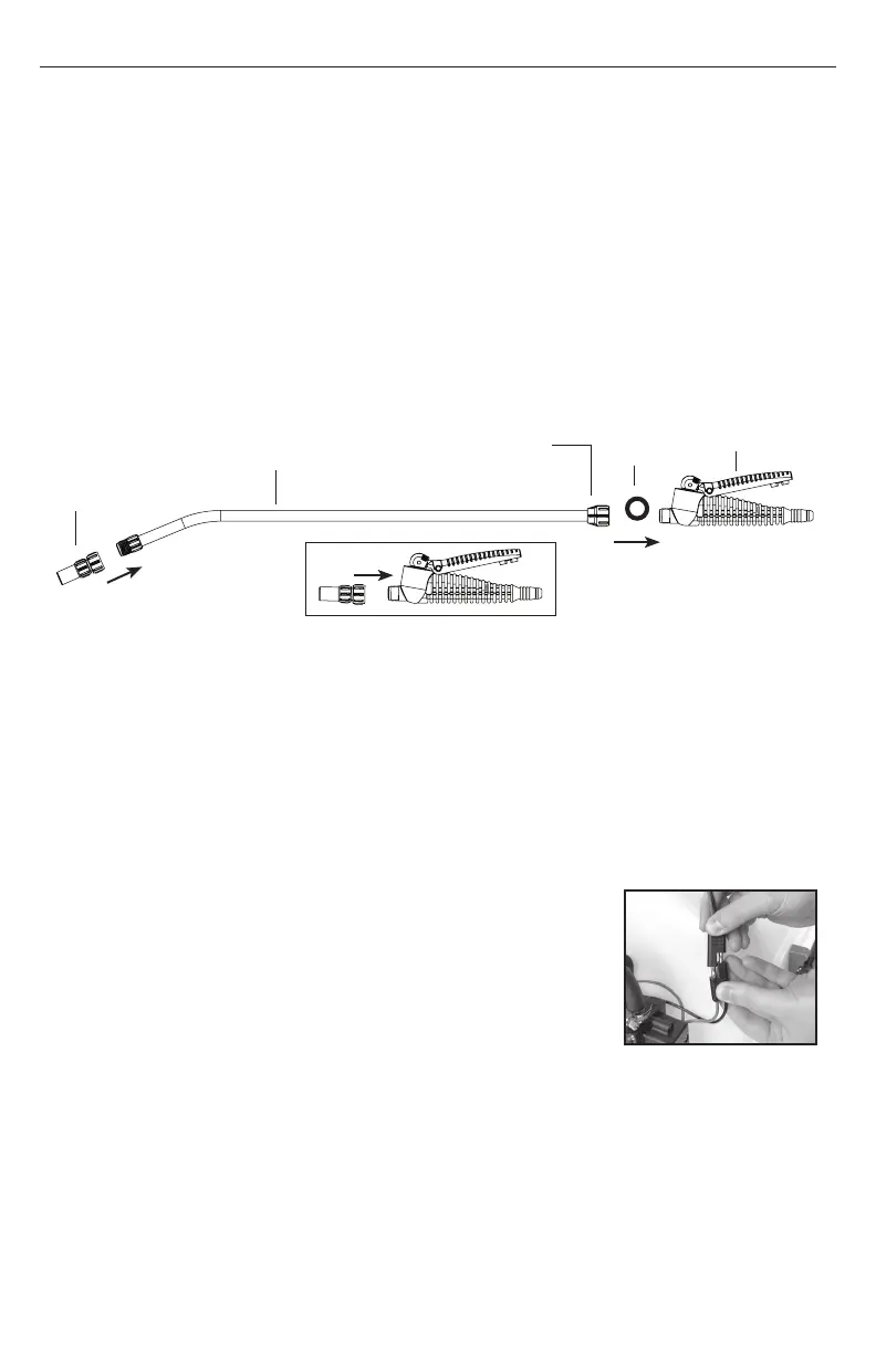 Enrosque el conjunto de la boquilla en el extremo de la varilla de extensión con rosca