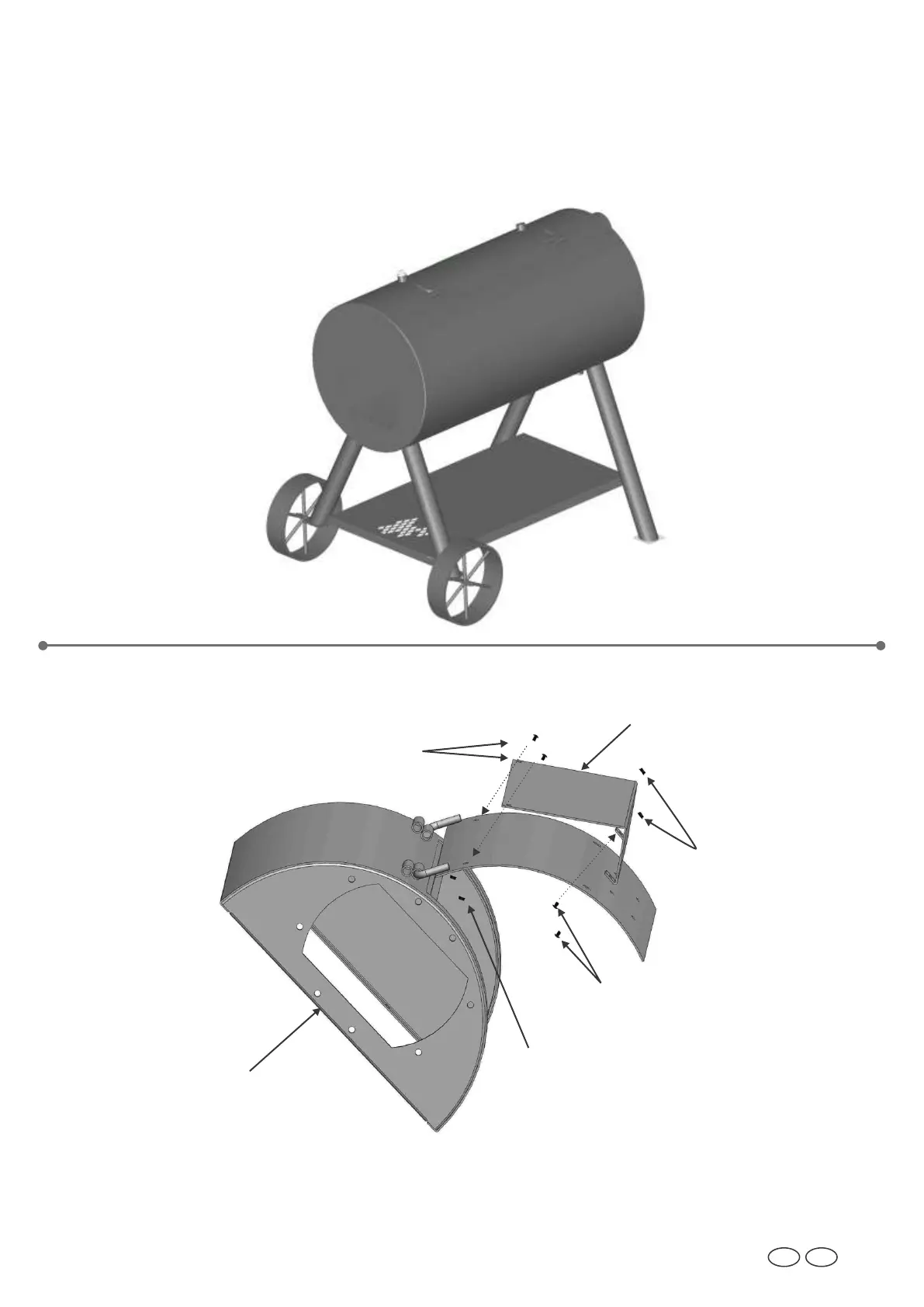 Utilizzare quattro viti da 1/4-20×½" e quattro dadi flangiati da 1/4-20 per fissare la piastra riscaldante al coperchio del focolare.