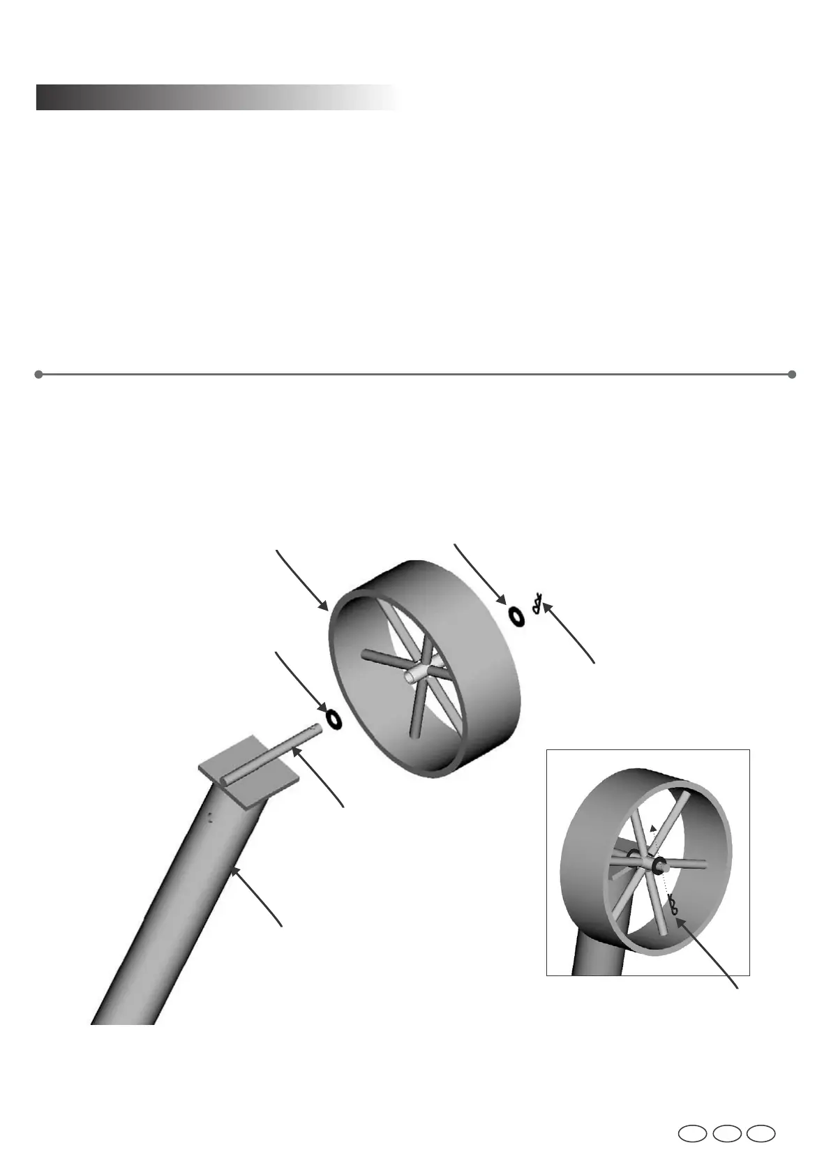 Op elke korte poot, schuif één 12mm platte ring op de as, gevolgd door een wiel, en dan nog een 12mm platte ring.