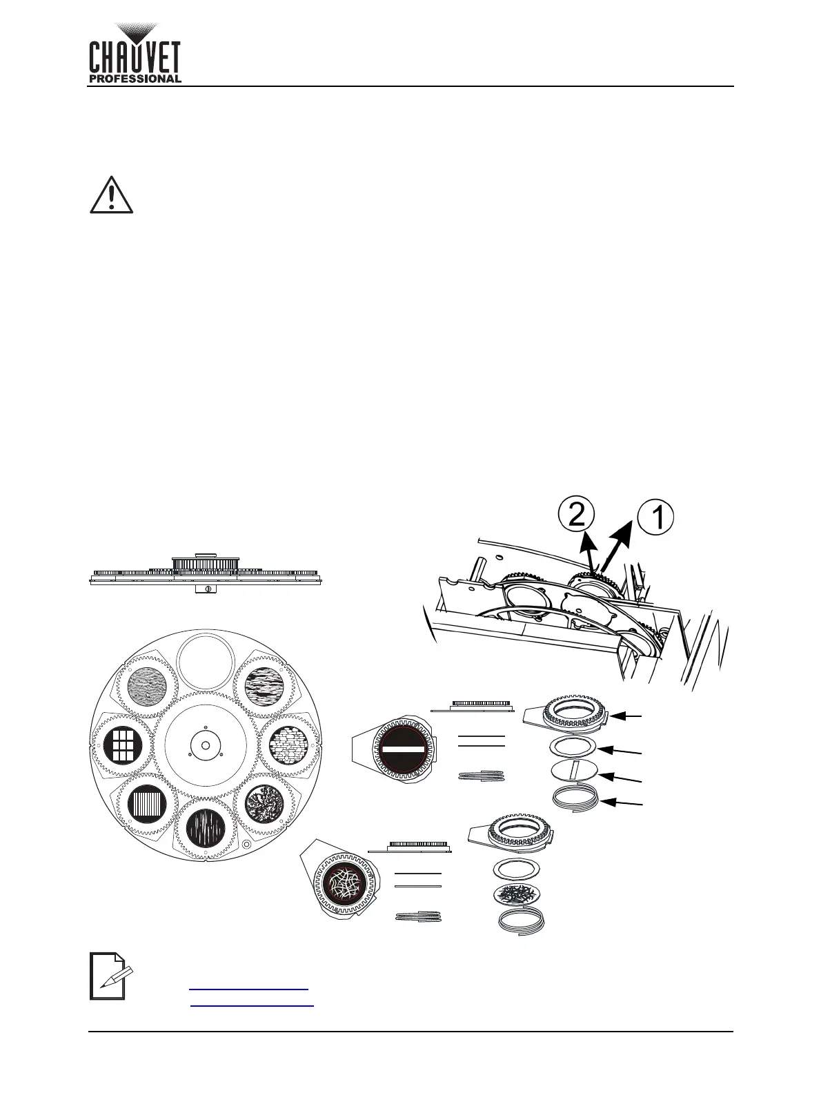 installed, the gobo plate should easily slide itself into the gobo wheel slot.