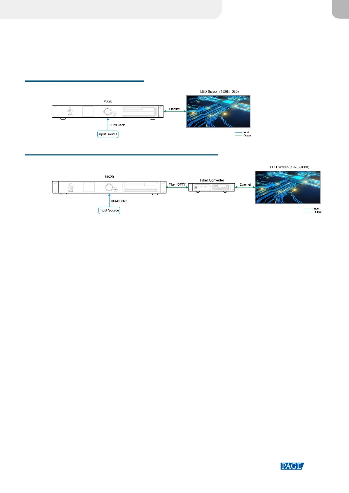 The MX20 has two typical application scenarios as shown below. In those application examples, the LED screen size