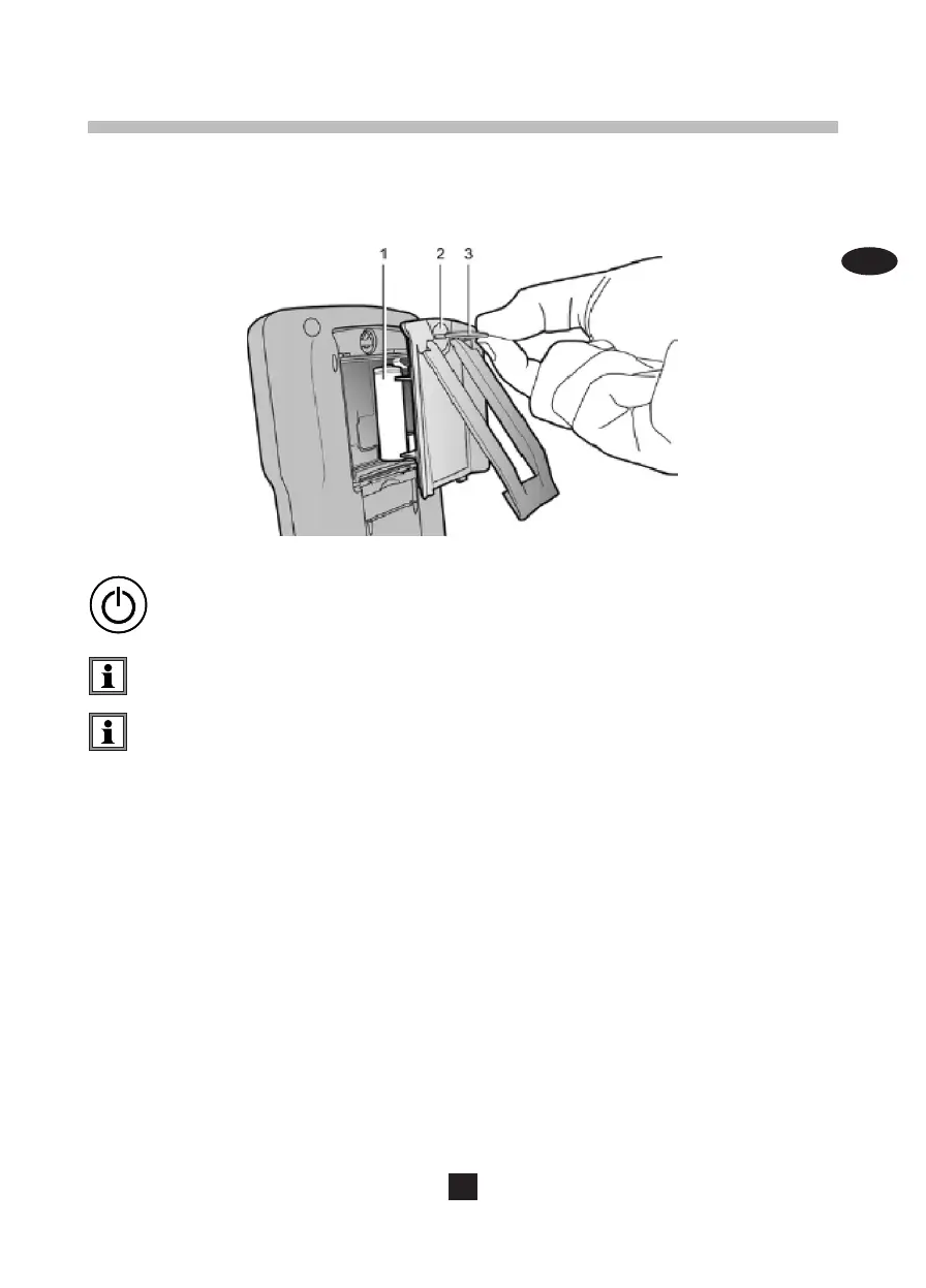 Die Akkus (1) bzw. Batterien sind auf der Geräterückseite in einem Akkufach untergebracht. Sie können den Deckel