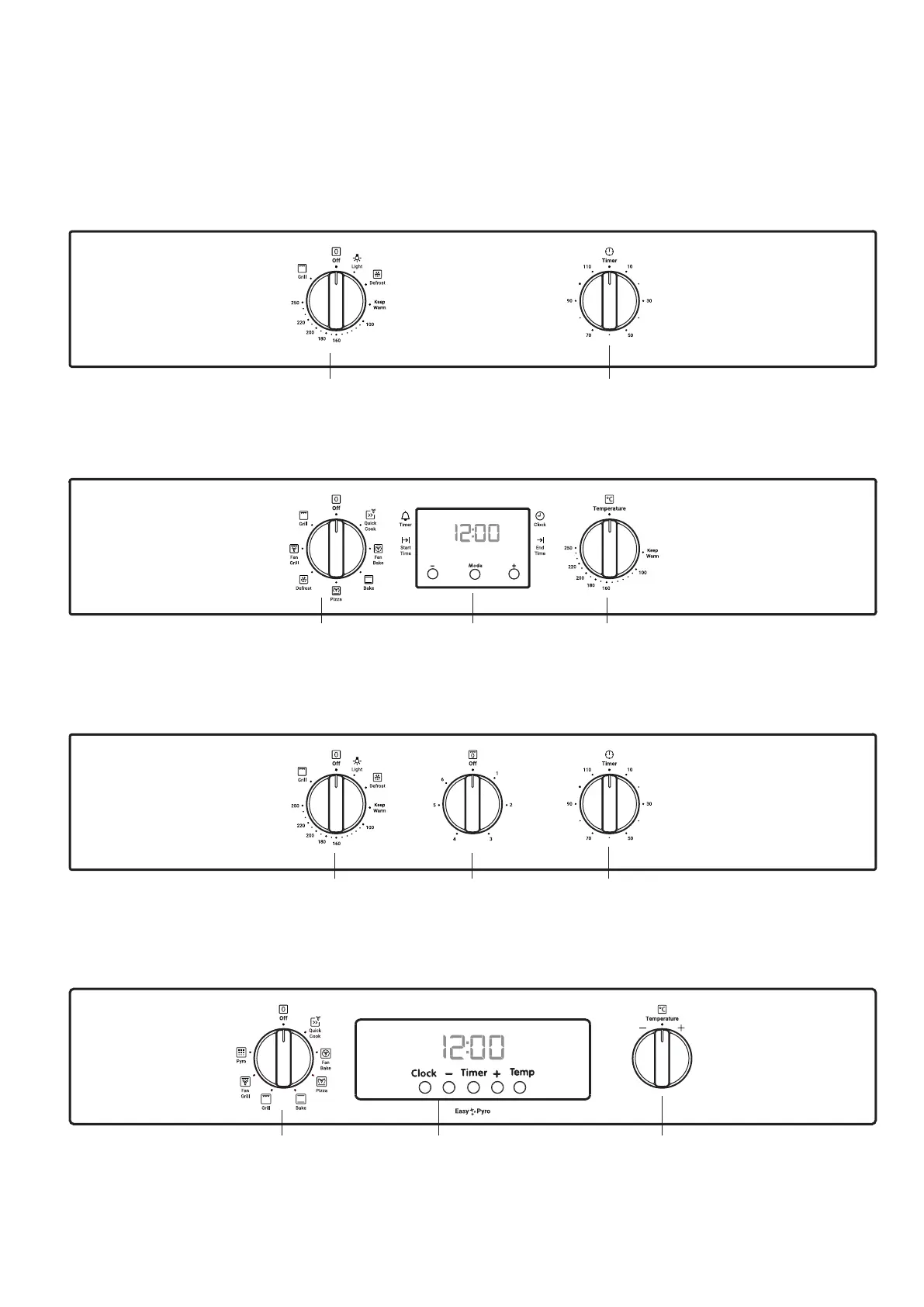 Oven function selector 3 button progammable clock Oven/Grill temperature selector