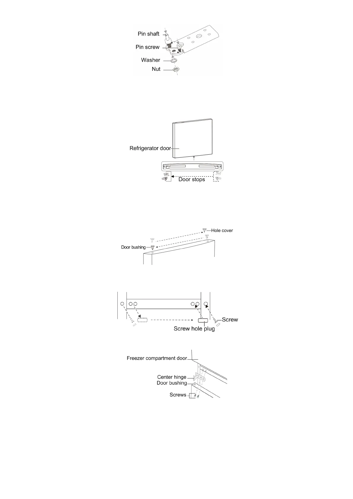 refrigerator compartment door, then remove the door stops and install to the bottom left